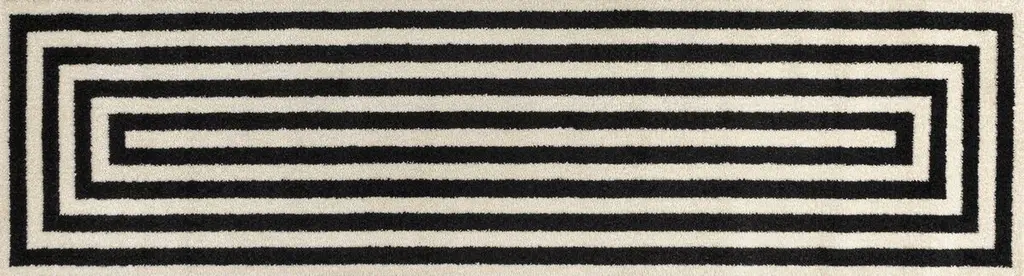 Our classic mitre-stripe design is welcome anywhere from the farmhouse to the beach. Woven from soft synthetic fibers, the crisp woven stripes turn the corners to frame the rug. Add geometric punch to your living room, dining room, bedroom or entry with this eye-catching, easy-care rug.