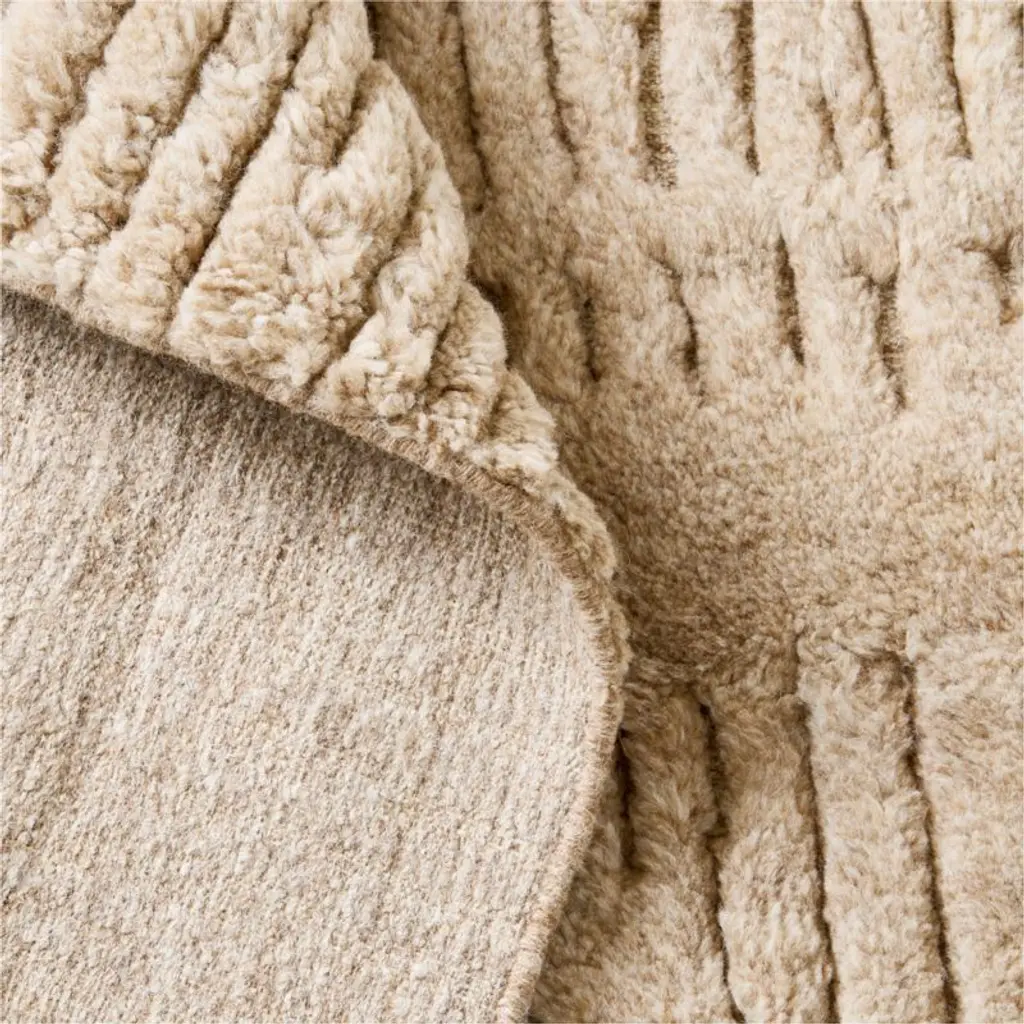Understated and artfully composed, taupe area rug is hand-knotted from 100% New Zealand wool in a traditional Persian weave. A subtle linear pattern emerges across the low cut pileadding quiet texture and visual depth without overwhelming the space. With a fine knot density of 20 knots per square inch, this rug is well-suited for medium-traffic areas. CB2 exclusive.How will it look in your room? 12"x12" rug samples are available in stores for a fee refundable upon return of the sample.