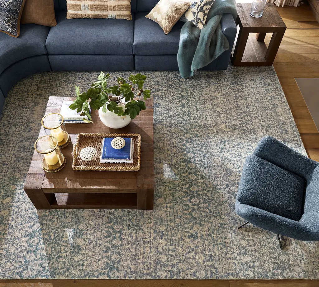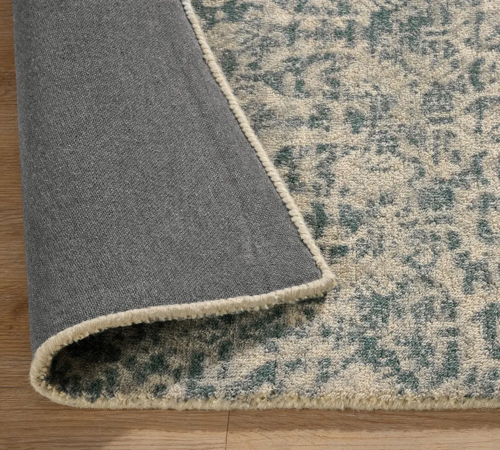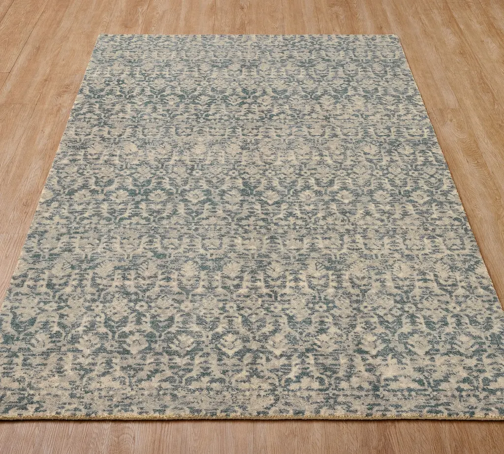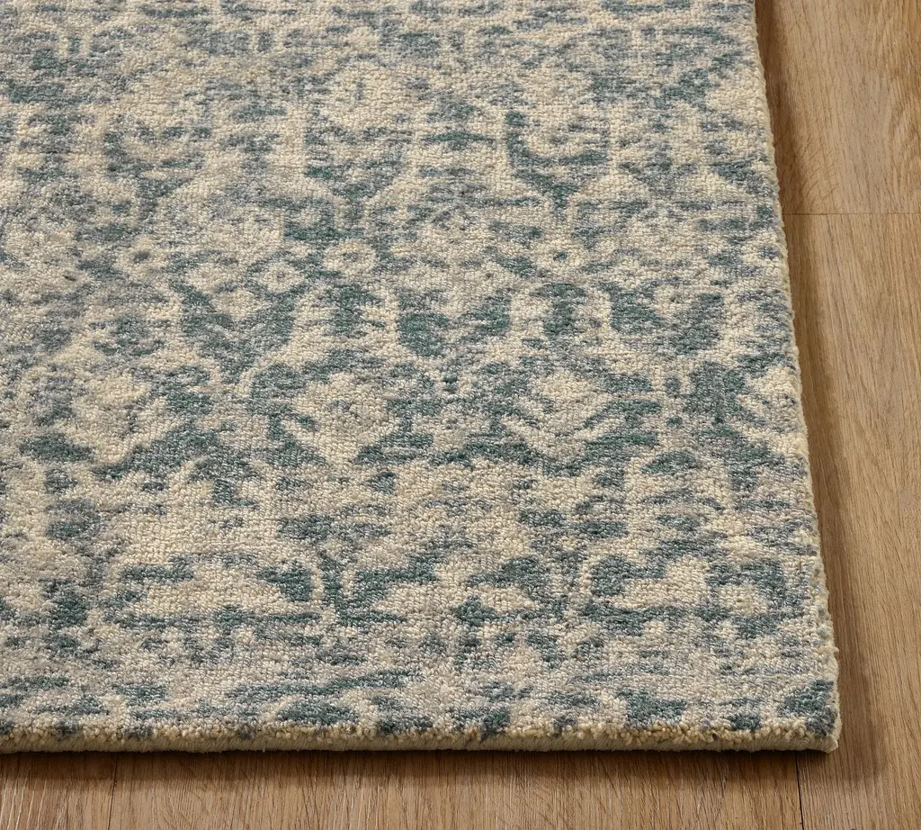 Discover the perfect balance of heritage pattern and contemporary color in our exquisitely handwoven wool rug. The allover damask motif—rendered in tranquil shades of blue against a soft ivory background—creates a sense of timeless elegance with a fresh, livable approach.