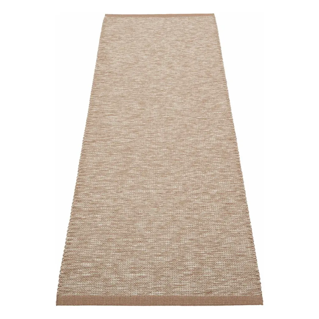 Pappelina's Emm rug introduces a fresh take on the brand’s iconic plastic rugs by blending phthalate-free PVC yarns with a linen warp. The result is a dynamic, subtly metallic rug that adds a touch of elegance to any space. Durable and easy to care for, the Emm rug is perfect for kitchens, hallways, entryways and children’s rooms. Like all Pappelina rugs, the Emm rug is woven using traditional methods in Sweden.