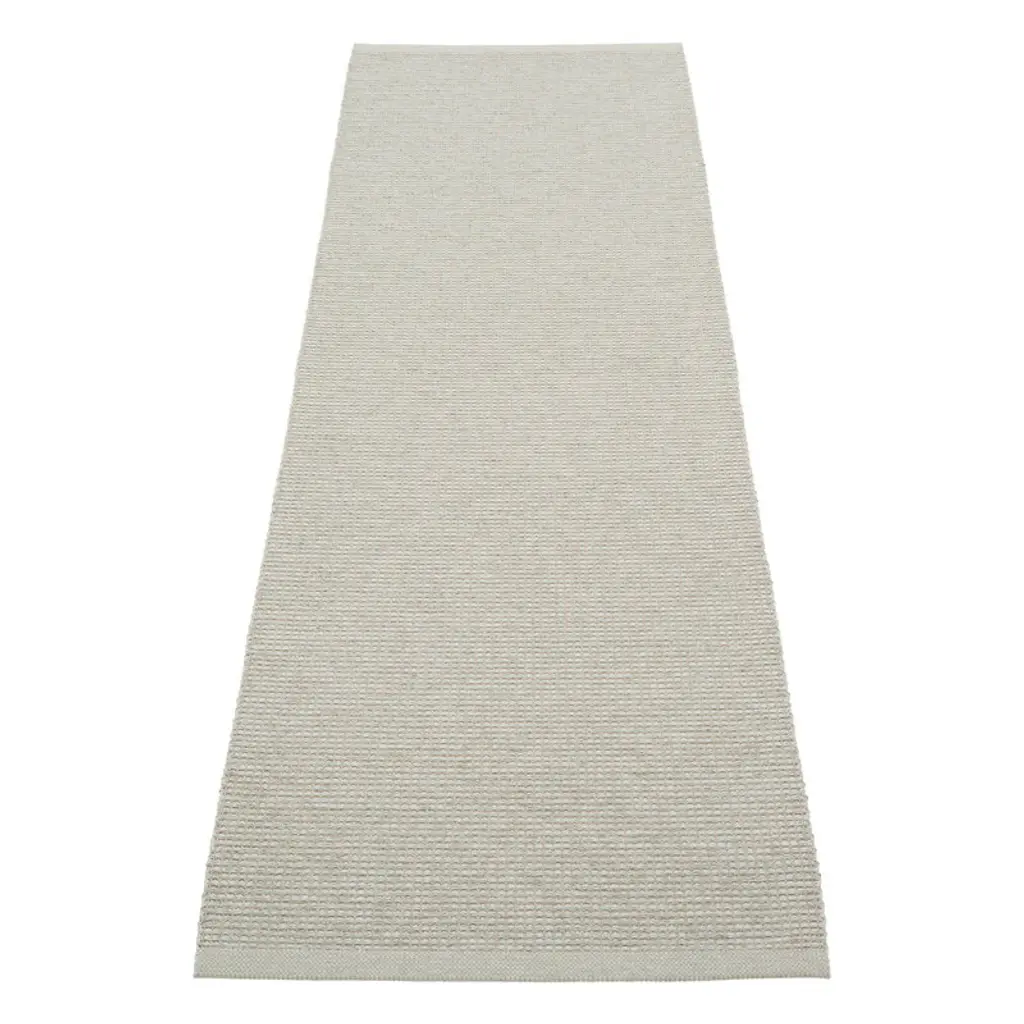 Pappelina's Emm rug introduces a fresh take on the brand’s iconic plastic rugs by blending phthalate-free PVC yarns with a linen warp. The result is a dynamic, subtly metallic rug that adds a touch of elegance to any space. Durable and easy to care for, the Emm rug is perfect for kitchens, hallways, entryways and children’s rooms. Like all Pappelina rugs, the Emm rug is woven using traditional methods in Sweden.