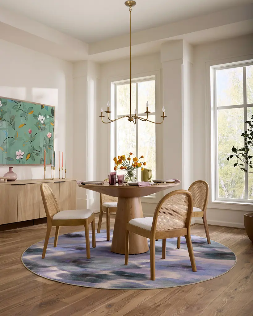 Welcome home the dreamlike beauty of our Emma Lavender Rug. Inspired by the ethereal qualities of bokeh effects and watercolor paintings, this design features a horizontal blur of flowers in a mix of lavender tones paired with light cream. Water-resistant, stain-resistant, and machine-washable. Rug colors may vary slightly according to your device and the lighting in your space.