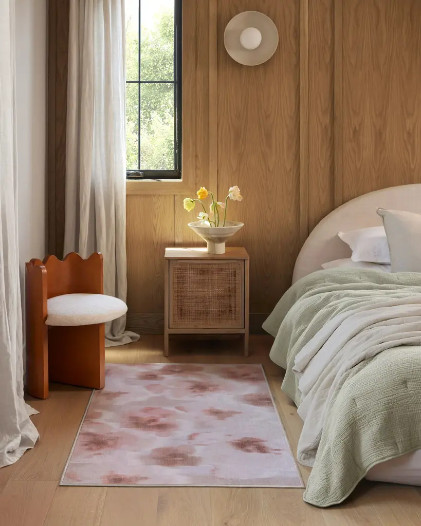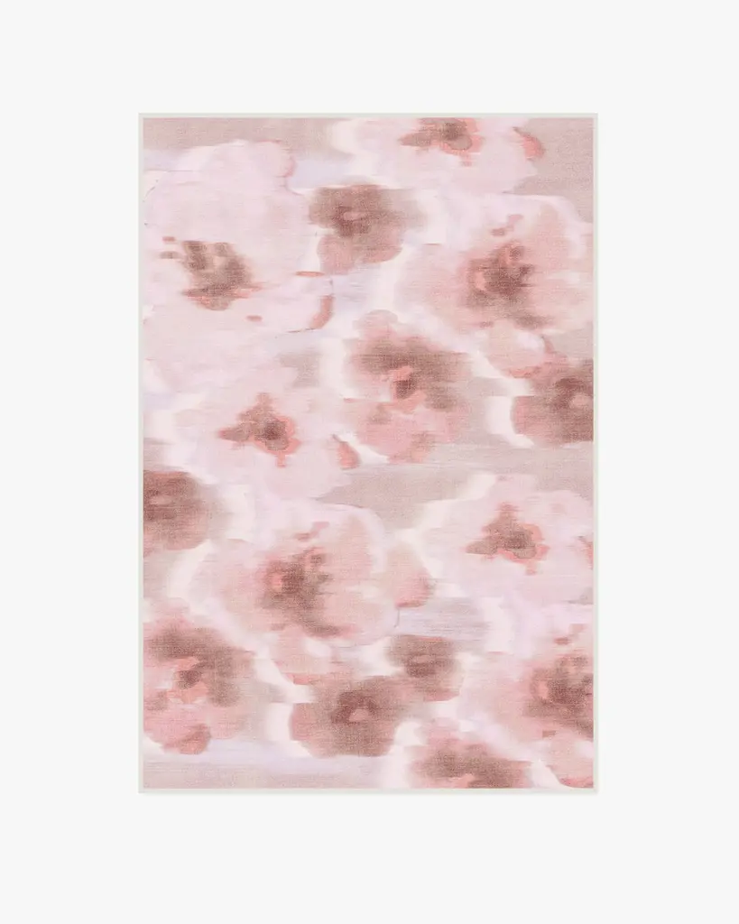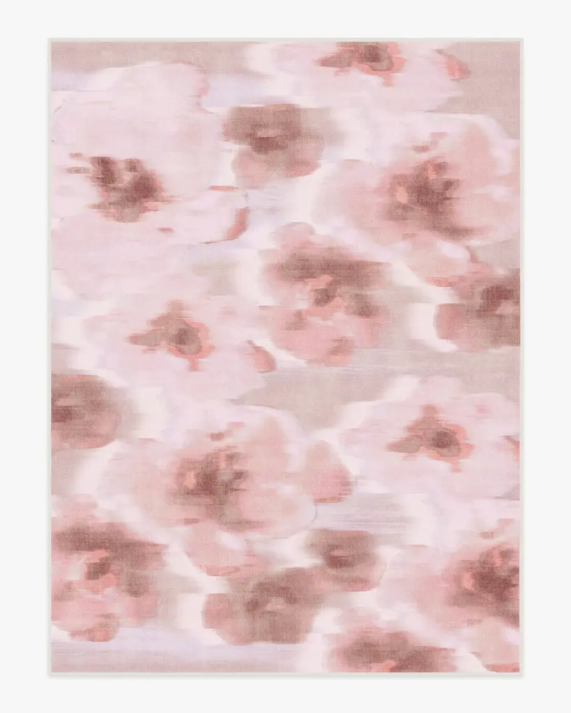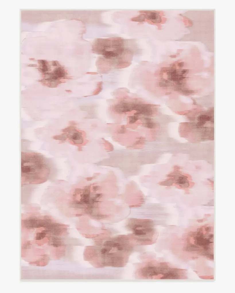 Welcome home the dreamlike beauty of our Emma Soft Rose Rug. Inspired by the ethereal qualities of bokeh effects and watercolor paintings, this design features a horizontal blur of flowers in a mix of soft pink tones paired with light cream. Water-resistant, stain-resistant, and machine-washable. Rug colors may vary slightly according to your device and the lighting in your space.