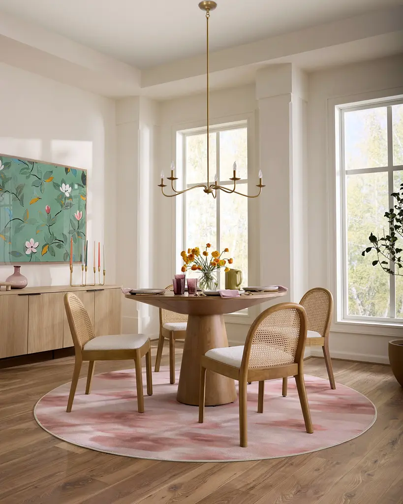 Welcome home the dreamlike beauty of our Emma Soft Rose Rug. Inspired by the ethereal qualities of bokeh effects and watercolor paintings, this design features a horizontal blur of flowers in a mix of soft pink tones paired with light cream. Water-resistant, stain-resistant, and machine-washable. Rug colors may vary slightly according to your device and the lighting in your space.
