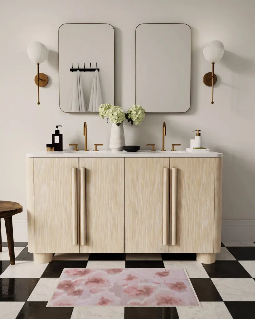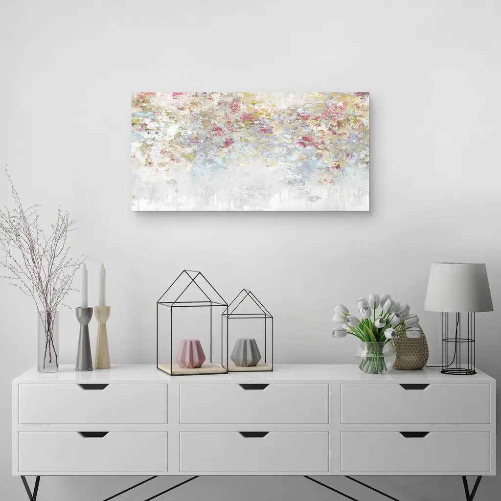 Welcome home the dreamlike beauty of our Emma Soft Rose Rug. Inspired by the ethereal qualities of bokeh effects and watercolor paintings, this design features a horizontal blur of flowers in a mix of soft pink tones paired with light cream. Water-resistant, stain-resistant, and machine-washable. Rug colors may vary slightly according to your device and the lighting in your space.