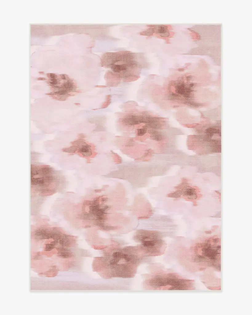 Welcome home the dreamlike beauty of our Emma Soft Rose Rug. Inspired by the ethereal qualities of bokeh effects and watercolor paintings, this design features a horizontal blur of flowers in a mix of soft pink tones paired with light cream. Water-resistant, stain-resistant, and machine-washable. Rug colors may vary slightly according to your device and the lighting in your space.
