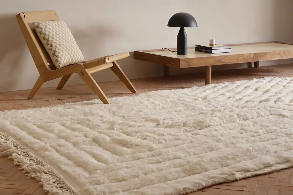 Our Moroccan pieces are each one-of-a-kind. Much of our collection was woven between 30 and 100 years ago, and curated by us. Other rugs in our collection are fresh off the loom and made with traditional techniques. Moroccan rugs don’t come with a key. As with any painting or poem, their motifs have many subjective interpretations. Originally made for personal use, these rugs took months to weave, documenting a shifting tide of events and emotions in the weaver’s life.