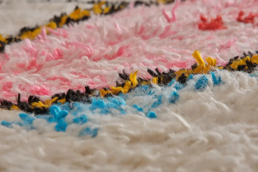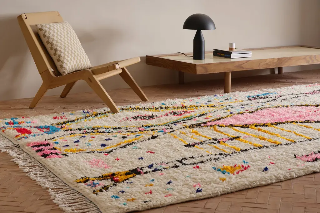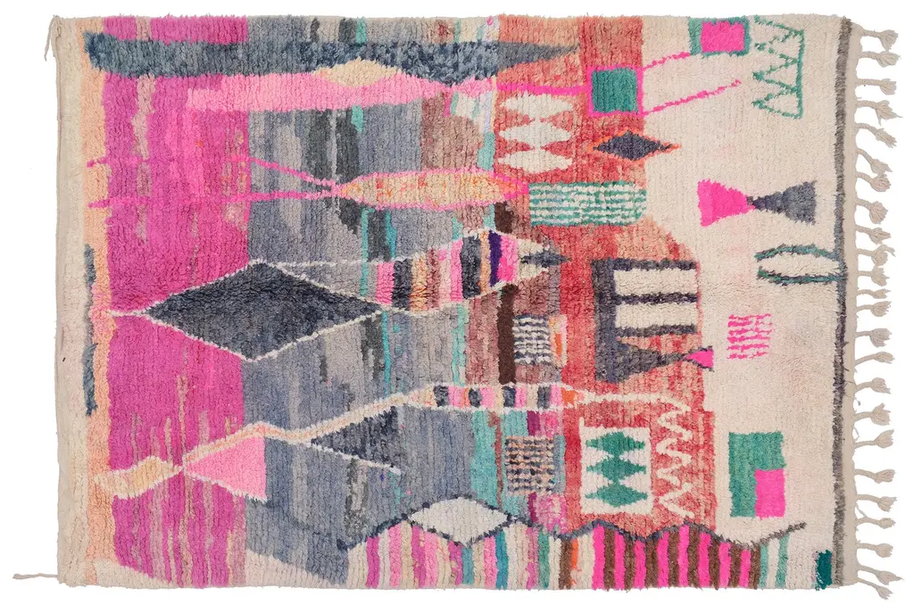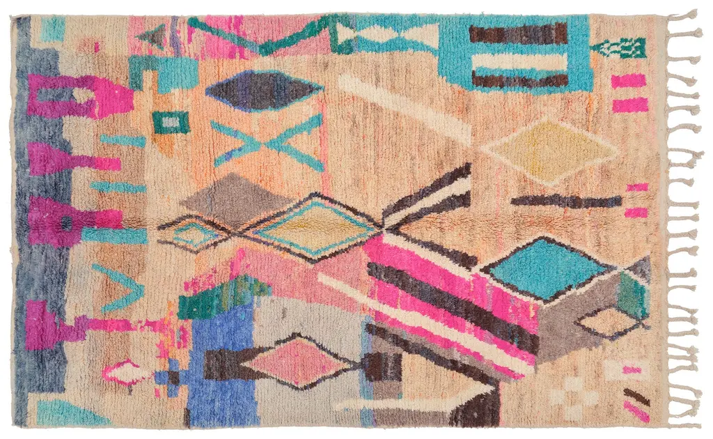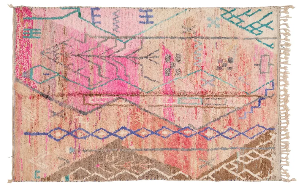 Our Moroccan pieces are each one-of-a-kind. Much of our collection was woven between 30 and 100 years ago, and curated by us. Other rugs in our collection are fresh off the loom and made with traditional techniques. Moroccan rugs don’t come with a key. As with any painting or poem, their motifs have many subjective interpretations. Originally made for personal use, these rugs took months to weave, documenting a shifting tide of events and emotions in the weaver’s life.
