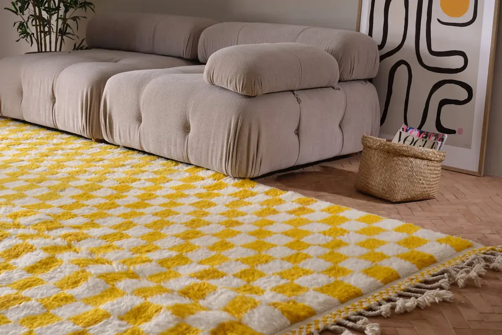 One-of-a-kind new rug, hand-knotted near the small city of Boujad in the Chaouia-Ouardigha region of Morocco