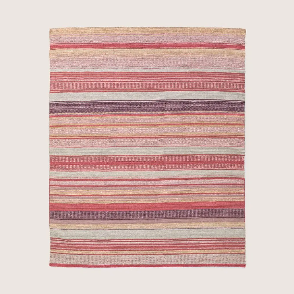 Charm never goes out of style. In a joyful palette of flatwoven stripes, this RWS-certified wool-and-cotton rug layers warmth and cheer into any room. It’s feel-good flooring.