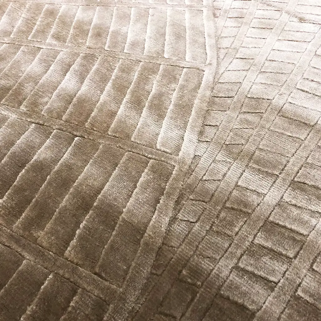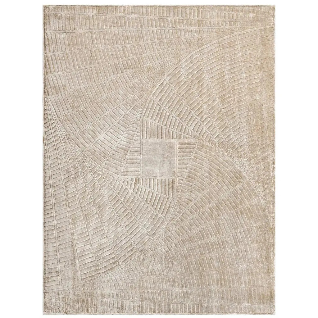 The beige counterpart to the Endless Rug in its blue variant, this refined rug offers a softer perspective of optical art, leaning on its textural appeal. Nepalese master craftsmen weft this piece of floor decor using 100% silk, creating a design that is .07cm high and emerges from a base that is .05 cm high with 152,000 knot/sqm. The fiber composition, color, and size can be customized and an anti-stain treatment can be required at an additional price to the Concierge.