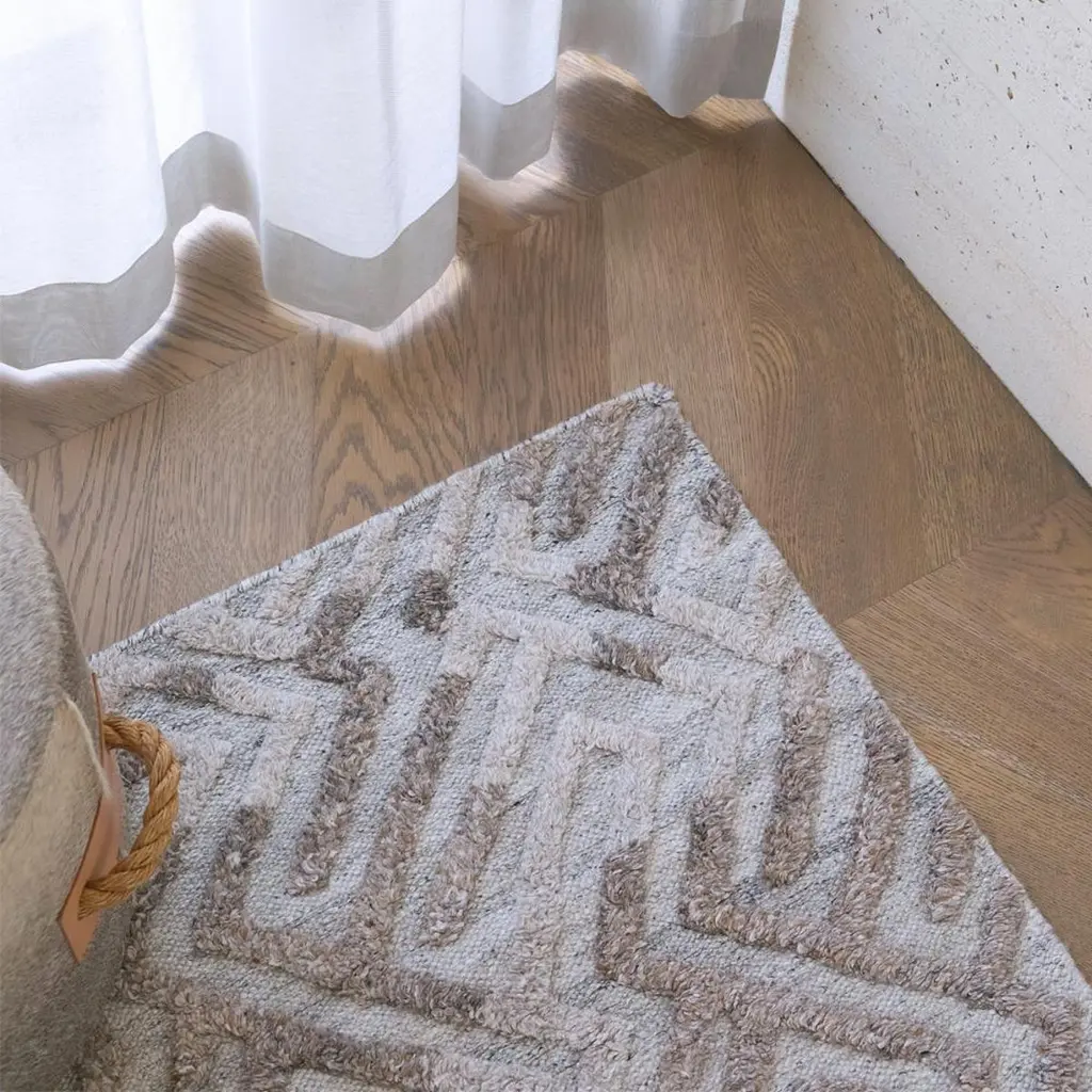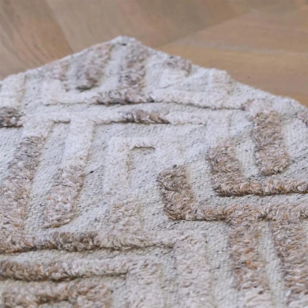 The kingdom weave is designed to bring both texture and tone into any flooring scheme. Its energetic pattern inspired by ancient freeze motifs is created from a mix of tonal viscose, wool, and cotton. Its unending, continuous lines let the brilliance of its blended neutrals shine.All ground control rugs are hand loomed to order, please allow 6-8 weeks for delivery.We are able to approve a 50% deposit to make your rug, with balance prior to delivery.Composition: wool, rayon cotton.