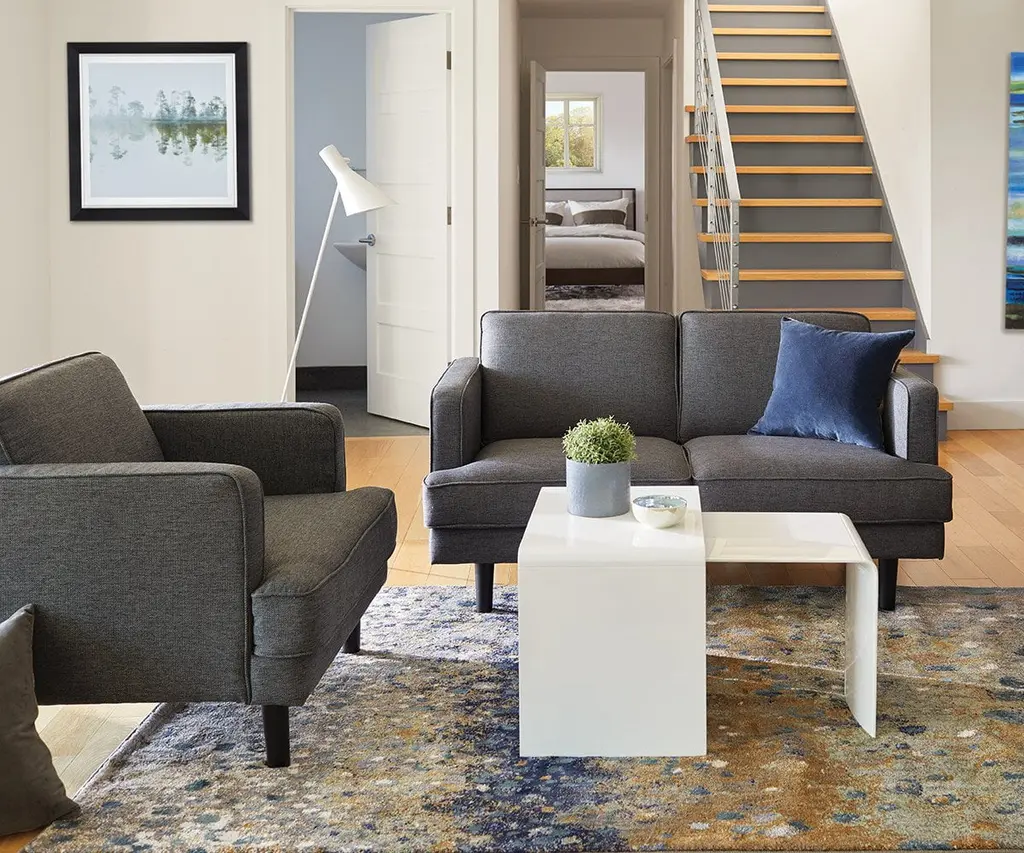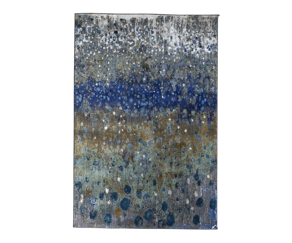 The Torrent Desert Rug brings a unique organic vibe to your space. Like an impressionist painting, the layered pattern in tones of blue and brown allow one to imagine an expansive desert landscape at dusk. This eco-friendly floor covering is made in the USA from recycled plastic bottles that go through a patented trans