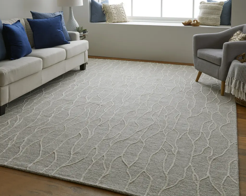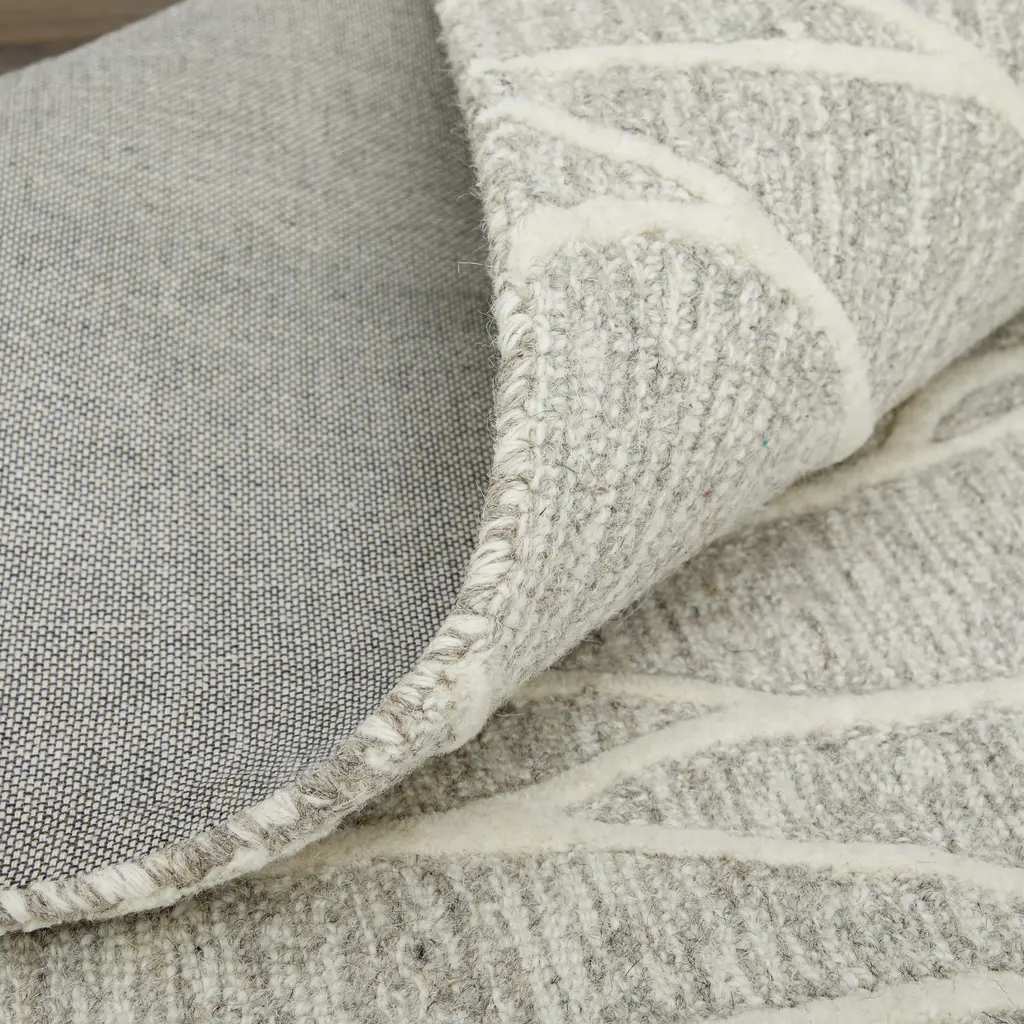 Collection: Enzo Colors: Taupe, Ivory Construction: Hand Tufted Material: Face: 100%Wool / Warp: Cotton Pile: Low Pile Pile Height: 0.31" Styles: Transitional,Casual,Natural Backing: Cotton Made In: India Thickness: 0.31" Price Range: $$$$$ (Affordable)