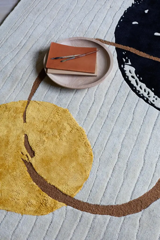 Eon Rug by Volver StudiosDimensions: W 250 x L 350 cm.Materials: Wool and bamboo.Available in seven size options: 90 x 240 cm, 140 x 200 cm, 170 x 240 cm, 200 x 300 cm, 250 x 350 cm, 300 x 400 cm, and 350 x 450 cm. Also available in custom measurements. Prices may vary. Please contact us.Volver is a Norwegian design studio that offers curated collections of premium rugs for private and public spaces. Volver aims to enrich the notion of Scandinavian design with a vibrant diversity of artistic and individual expressions.Originally from Tallinn, Estonia, born and raised in an artist home, Ksenia Stanishevski studied industrial design at the School of Architecture and Design in Oslo, Norway and The University of Newcastle, Australia.By starting Volver in 2018, Ksenia’s design objective has been to bring individual artistry and creativity into our environments, be it home or work. “Inspiring expression” in each of her clients and each project has been a fundamental element in her work. Pushing the limits between art, design, and handcraft, Ksenia constantly experiments and dares to confront stereotypes of what rug is, what art is, and what textile is, and is working with scales from micro to macro, pushing the possibilities of available technology and traditional handcraft.