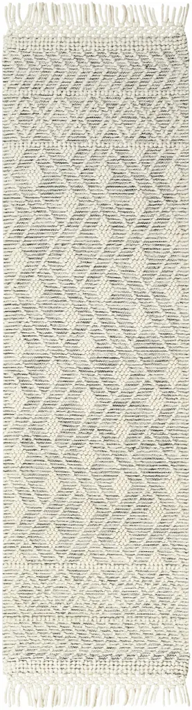 Collection: Erica Colors: Ivory, Black Construction: Hand Woven Material: 60% Wool,40% Polyester Pile: No Pile Styles: Transitional,Traditional Made In: India Thickness: 0.51" Fringe Length: 4" Price Range: $$$$$ (Most Affordable)