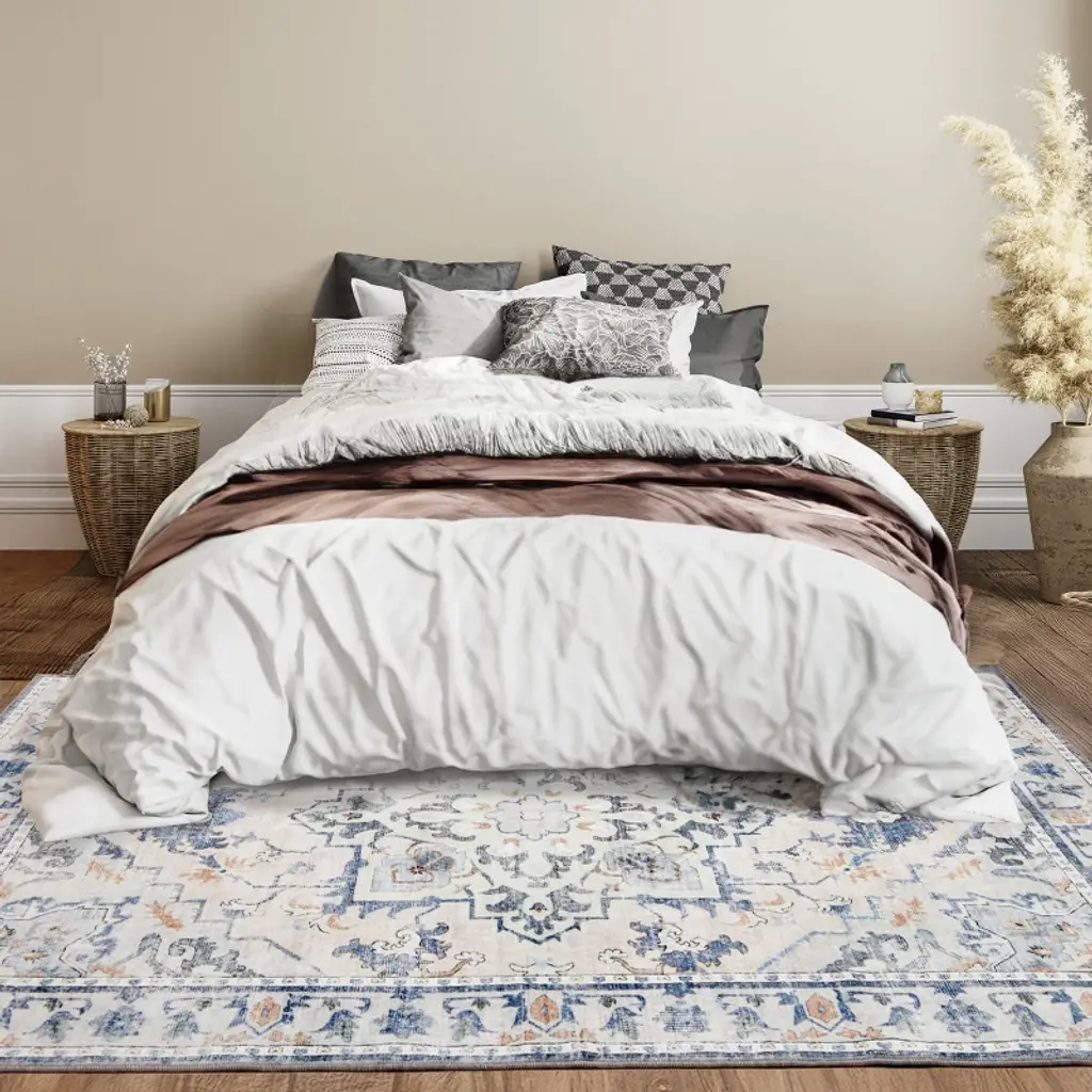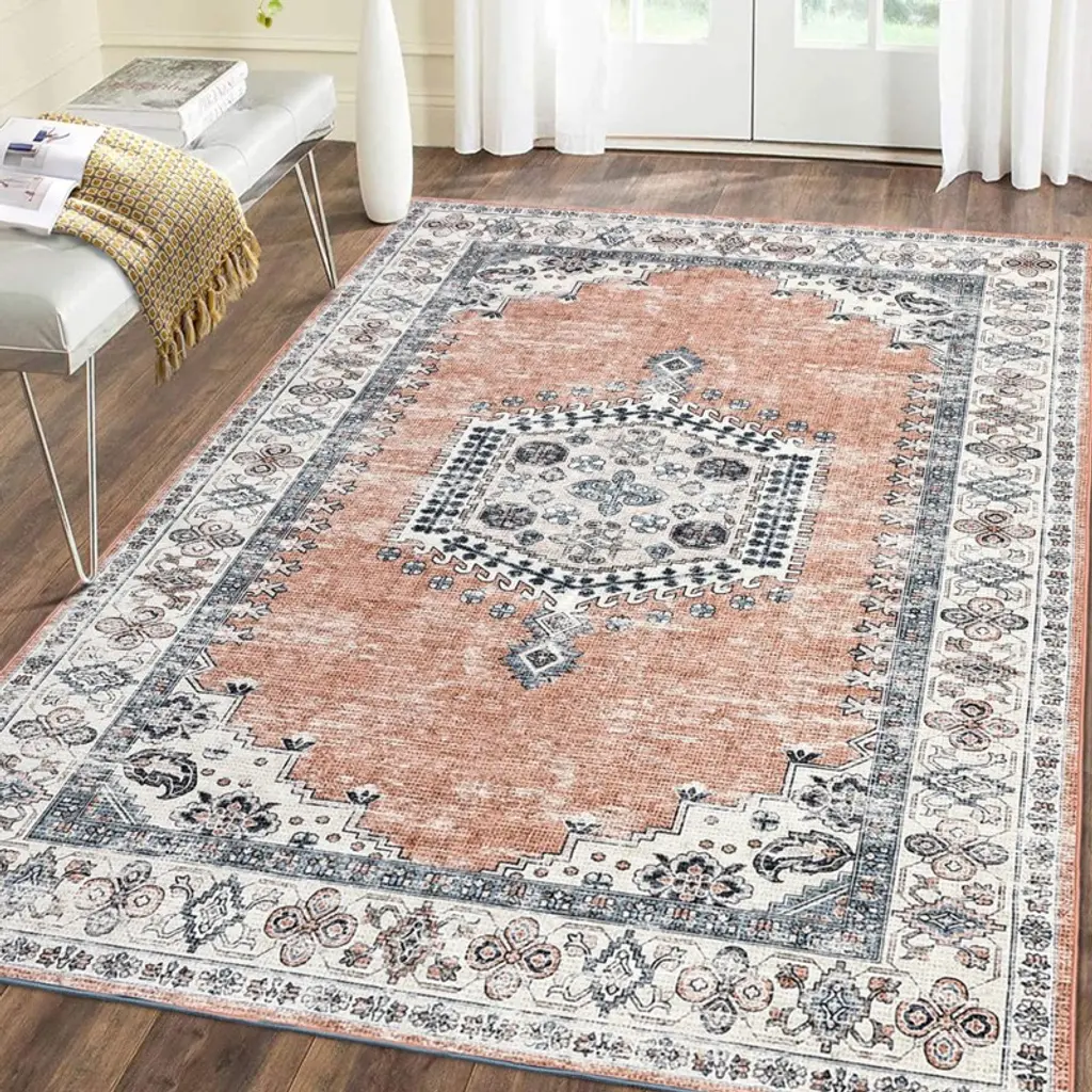 Encounter this floral rug for your home! The sizes are suitable for various room needs. It can easily handle kids' playtime, pets' running around, and daily footsteps, making it ideal for high traffic areas such as bedrooms, living rooms, and kitchens. Crafted with a higher cashmere content, it's incredibly soft, making you feel like you're walking on clouds. The non slip backing ensures that it won't shift or slide, providing safety for your family. When stains occur, this floral washable rug can solve the problem immediately. You can simply toss it into the washing machine for a clean, or wipe it with a damp cloth for quick cleaning.