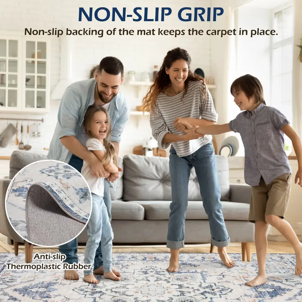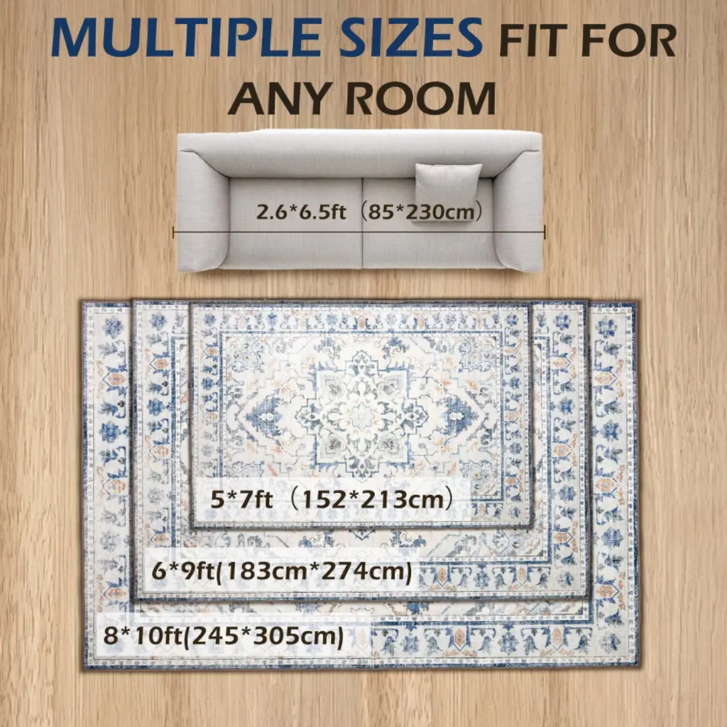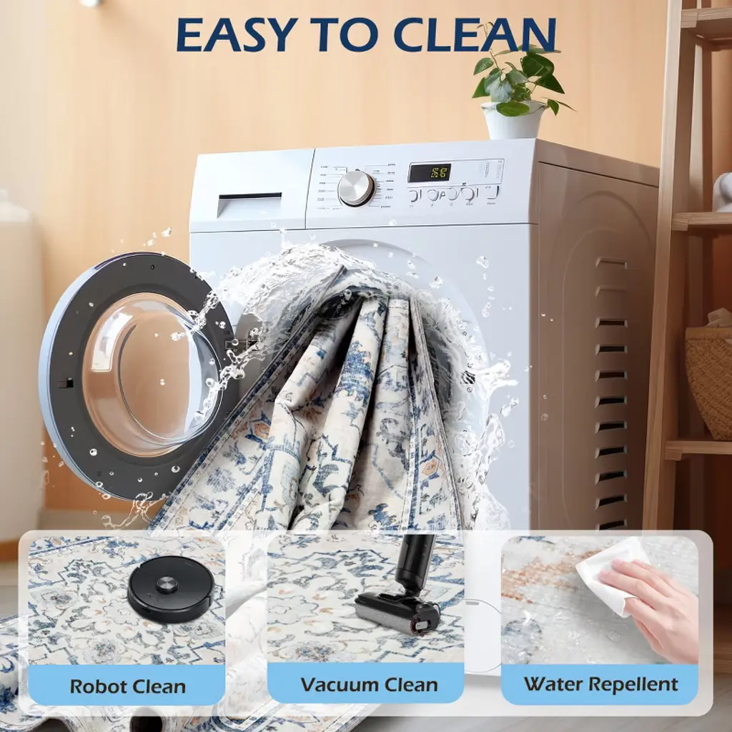 Erommy Machine Washable Area Rug, Oriental Ivory/blue Area Rug With Non-slip Backing For High Traffic Area, Ideal For Bedroom, Living Room