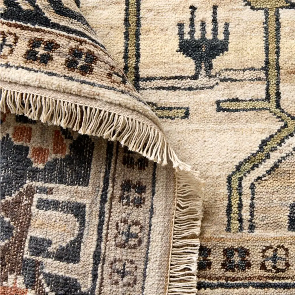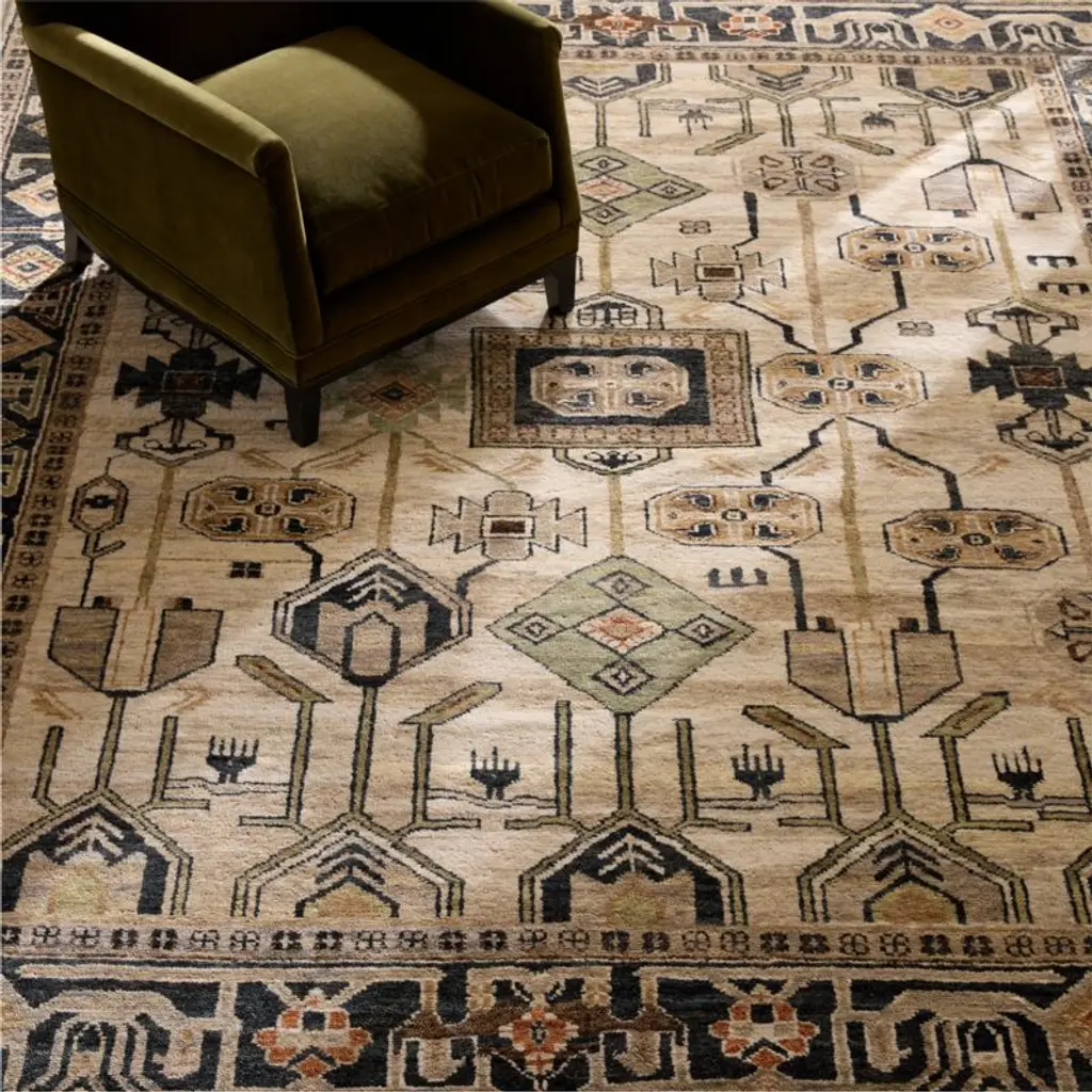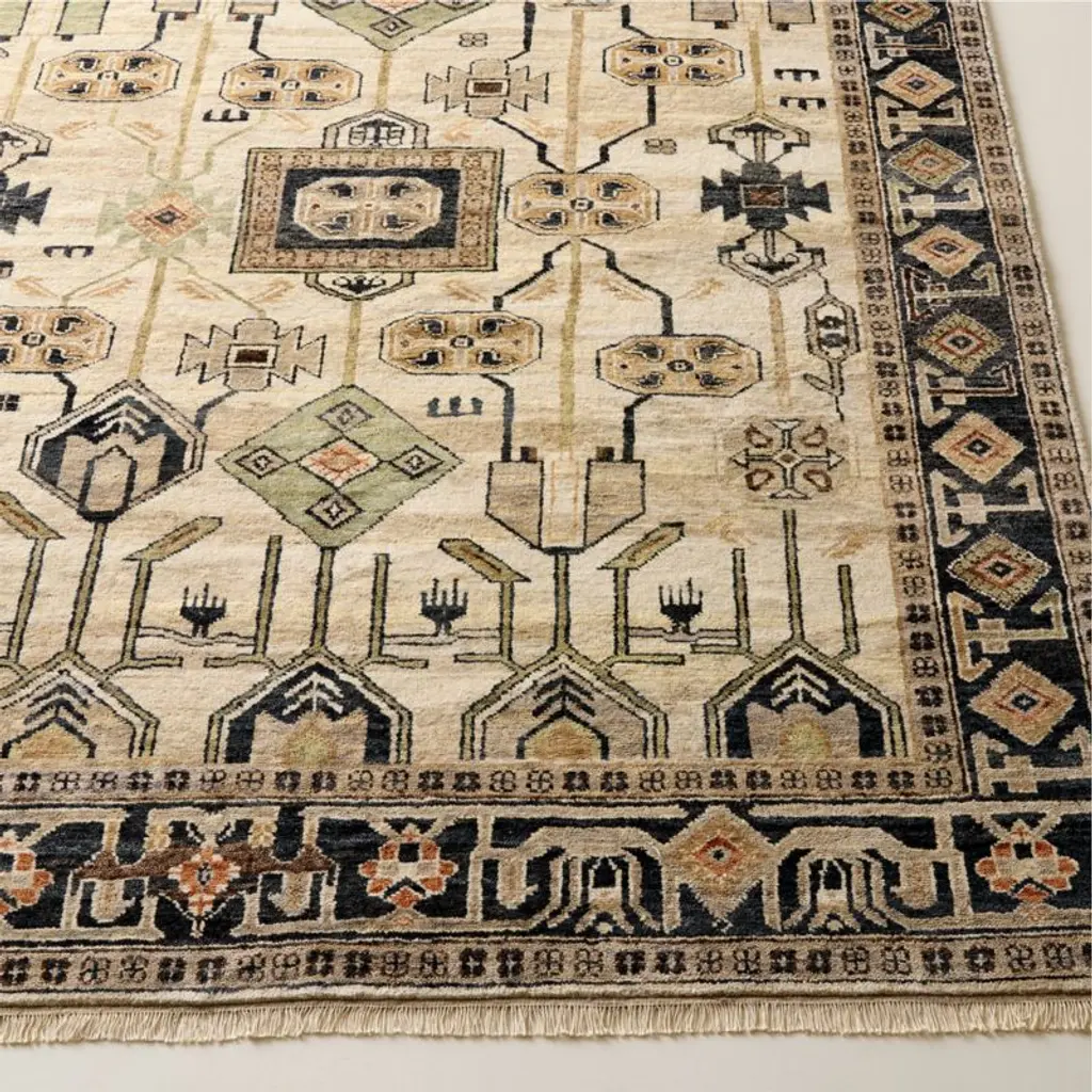 A fusion of traditional craftsmanship and bold design, hand-knotted wool area rug showcases an intricate pattern in rich shades of taupe, brown and cream. Inspired by Persian textiles, its low pile and dense weave add both texture and visual depth, creating a piece that feels timeless yet strikingly modern. Rich in history but crafted for today's lifestyle, this piece is made to endure, even in high-traffic areas. CB2 exclusive.How will it look in your room? 12"x12" rug samples are available in stores for a fee refundable upon return of the sample.