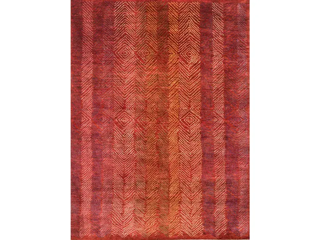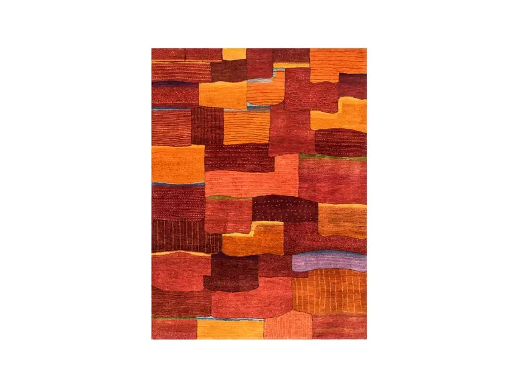 Erratic Tiles, Red & Orange is a rectangular wool rug.Zollanvari Super Fine Gabbeh.Abstract designs are Gabbeh classics. Zollanvari have produced modern versions of these classics that have won recognition worldwide, including various Carpet Design Awards at DOMOTEX, German Design Awards and Interiors Innovation Awards at IMM Cologne. Abstract & Plain Gabbehs are available in both Zollanvari Fine and Zollanvari Super Fine qualities. We also offer carpets in natural colours (un-dyed wool) and single colours with a mesmerising abrash effect in our Zollanvari Fine ‘Shekarlou’ range, woven by Turkmen tribes in northern Iran. These carpets are lighter due to the use of a single weft between rows of knots.