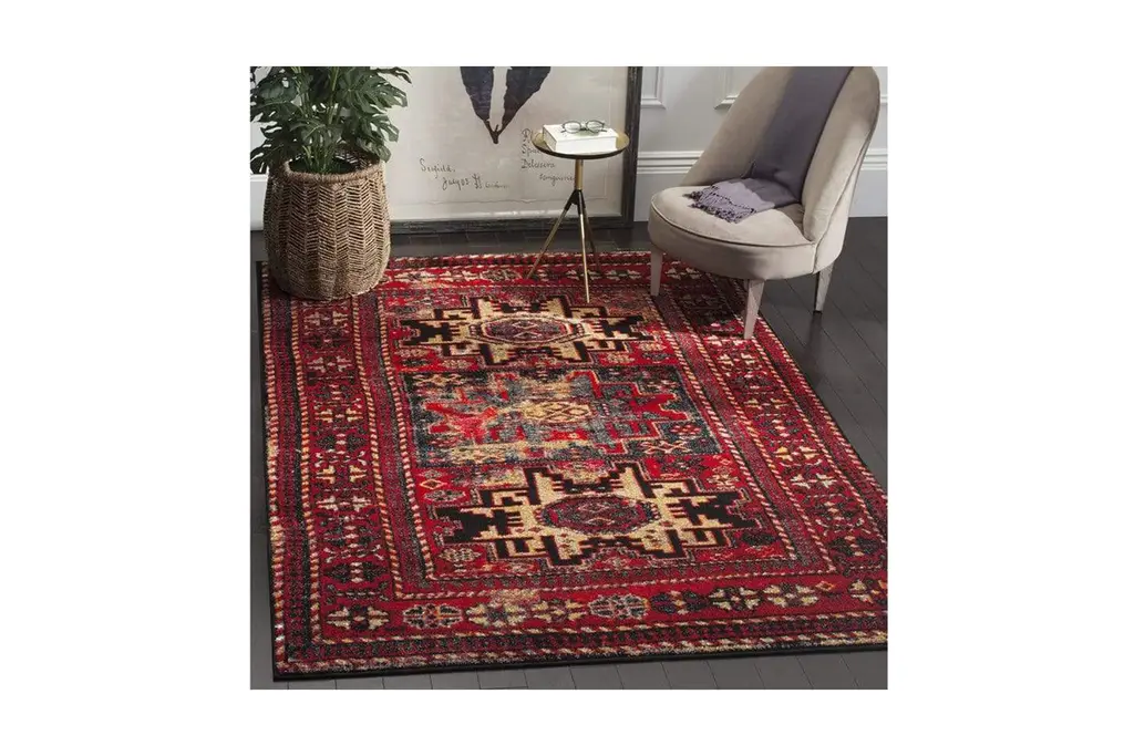 A worldly motif and saturated color palette bring sophistication and character to the Esen Area Rug. Power-loomed in Turkey for supreme durability, the low pile works well in high-traffic areas, such as dining and living rooms.