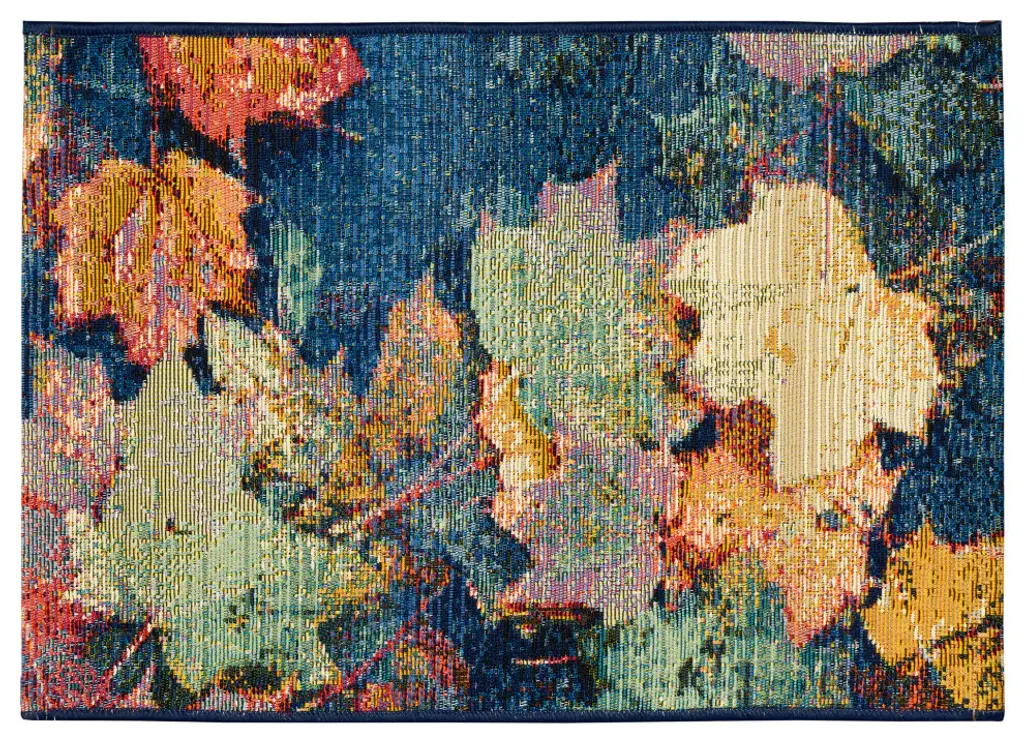 Featuring deep, vivid colors, this mat adds the romance and nostalgic appeal of Fall to your indoor or outdoor space. Evoking the image of a freshly raked pile of leaves in lively hues of orange, red, yellow and green, offset by a dark teal background. Made in Egypt from 75% polypropylene/25% polyester, reinforced with a latex non-skid backing, the Esencia Collection is Power Loomed to create intricate designs with a broad color spectrum and a high-quality finish. The material is flatwoven, low profile, weather resistant, UV stabilized for enhanced fade resistance, durable and ideal for those high traffic areas such as your patio, sunroom, kitchen, entryway, hallway, living room and bedroom making this the ideal indoor or outdoor rug. Detailed patterns are offered in an eclectic mix of styles ranging from tropical, coastal, geometric, contemporary and traditional designs; making these perfect accent rugs for your home. Limiting exposure to rain, moisture and direct sun will prolong rug life.