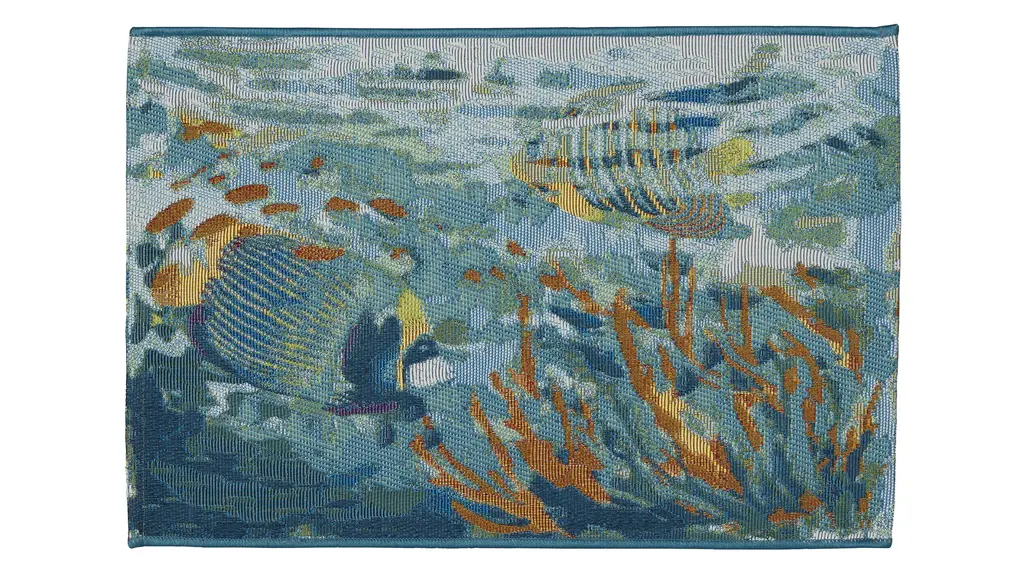 Featuring orange, black and white koi fish swimming around in blue waters among green lily pads. Made in Egypt from 75% polypropylene/25% polyester, reinforced with a latex non-skid backing, the Esencia Collection is Power Loomed to create intricate designs with a broad color spectrum and a high-quality finish. The material is flatwoven, low profile, weather resistant, UV stabilized for enhanced fade resistance, durable and ideal for those high traffic areas such as your patio, sunroom, kitchen, entryway, hallway, living room and bedroom making this the ideal indoor or outdoor rug. Detailed patterns are offered in an eclectic mix of styles ranging from tropical, coastal, geometric, contemporary and traditional designs; making these perfect accent rugs for your home. Limiting exposure to rain, moisture and direct sun will prolong rug life.
