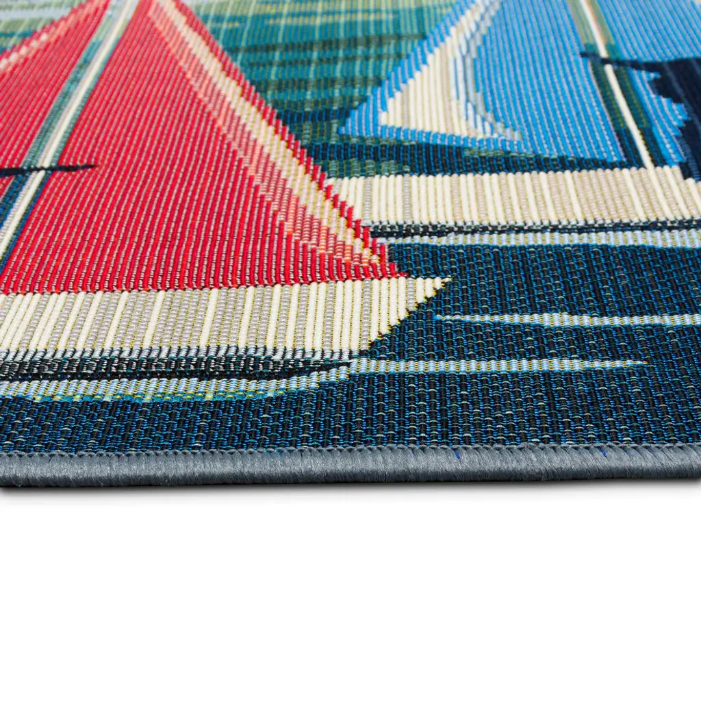 Featuring two black labs on red and aqua sail boats navigating the ocean. Made in Egypt from 75% polypropylene/25% polyester, reinforced with a latex non-skid backing, the Esencia Collection is Power Loomed to create intricate designs with a broad color spectrum and a high-quality finish. The material is flatwoven, low profile, weather resistant, UV stabilized for enhanced fade resistance, durable and ideal for those high traffic areas such as your patio, sunroom, kitchen, entryway, hallway, living room and bedroom making this the ideal indoor or outdoor rug. Detailed patterns are offered in an eclectic mix of styles ranging from tropical, coastal, geometric, contemporary and traditional designs; making these perfect accent rugs for your home. Limiting exposure to rain, moisture and direct sun will prolong rug life.