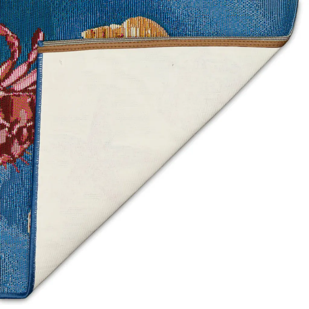 Featuring a sea blue background with life like assorted shellfish that are scattered to create an interesting coastal themed mat. Made in Egypt from 75% polypropylene/25% polyester, reinforced with a latex non-skid backing, the Esencia Collection is Power Loomed to create intricate designs with a broad color spectrum and a high-quality finish. The material is flatwoven, low profile, weather resistant, UV stabilized for enhanced fade resistance, durable and ideal for those high traffic areas such as your patio, sunroom, kitchen, entryway, hallway, living room and bedroom making this the ideal indoor or outdoor rug. Detailed patterns are offered in an eclectic mix of styles ranging from tropical, coastal, geometric, contemporary and traditional designs; making these perfect accent rugs for your home. Limiting exposure to rain, moisture and direct sun will prolong rug life.