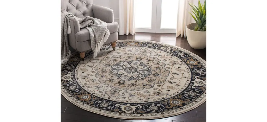 The Essex Area Rug Round from the Lyndhurst Rug Collection offers the beauty and detail of traditional Persian and European styles in versatile, durable area rugs. The smart selection of florals, vines, and latticework available in Lyndhurst will add warm, welcoming charm to classy decor. Lyndhurst Rugs are made using a blend of soft, durable synthetic yarns for lasting beauty and vivid color.