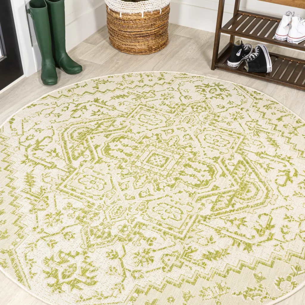 Estrella Bohemian Medallion Textured Weave Indoor/outdoor Area Rug - Black / 5' Round