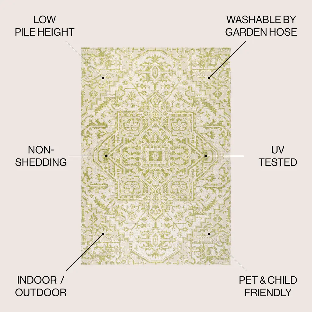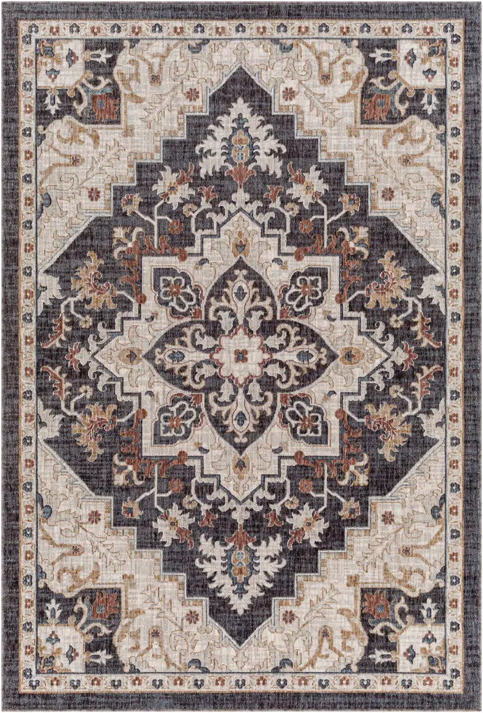 With its star-inspired medallion, this borderless rug adds dreamy Bohemian style to an outdoor porch or patio. Varied tones of black on a mingled gray background give this rug a hand-woven, vintage vibe. The flatweave design is great for high-traffic spaces indoors too.