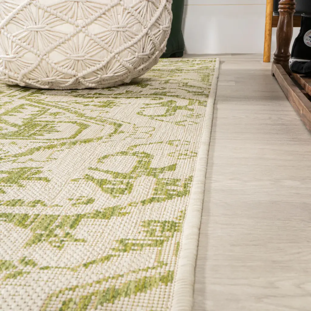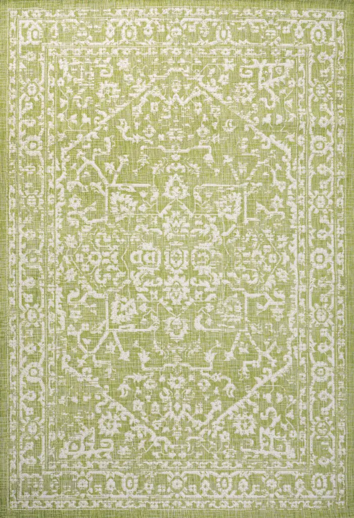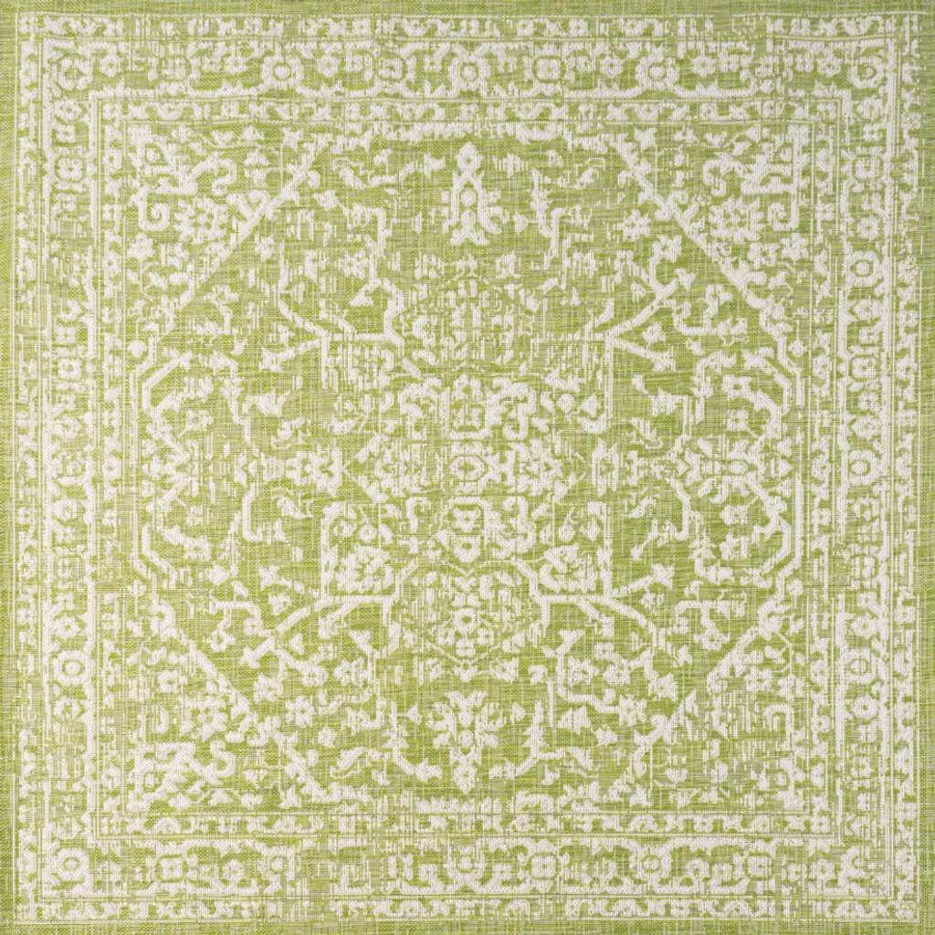 With its star-inspired medallion, this borderless rug adds dreamy Bohemian style to an outdoor porch or patio. Varied tones of red and rust on a mingled gray background give this rug a hand-woven, vintage vibe. The flatweave design is great for high-traffic spaces indoors too.Features:• Flat-weave construction of 100% polypropylene• Light gray and black with a handwoven mingled texture• Water resistance with 0.19" pile• 100% Polypropylene• No backing, use of rug pad is recommended (sold separately)• Power Loomed in Turkey• Actual Dimension: 5 ft. 3 in. x 5 ft. 3 in. Round• Color: Cream/Green• Thickness measures: 0.19 in.• Available in multiple sizes and/or colorsRug Care:• Vacuum regularly and spot clean as needed; avoid direct and continuous exposure to sunlight; use brushless vacuum; remove spills immediately; if liquid, blot with clean, undyed cloth by pressing firmly around the spill to absorb as much as possible; for hard to remove stains, professional rug cleaning is recommended; store in a dry, well ventilated area and rotate for consistent wear• Packing and shipping may cause temporary creases in rugs, which will flatten out after a week on the floor; to expedite the process, try back-rolling your rug before laying it down, and then allow ample time for the remaining creases to relax• Please Note: Due to differences in monitors, some rug colors may vary slightly. Lengths and widths may vary from the published dimensions. Patterns may vary slightly according to shape and size selected.About us:Style your floors with JONATHAN Y. By combining fine craftsmanship and design, this New York creative studio is bringing fashion to your floors. The collection mixes sustainable organic materials, vibrant colors and trend worthy styles to create JONATHAN Y''s distinctive catalog of rugs.