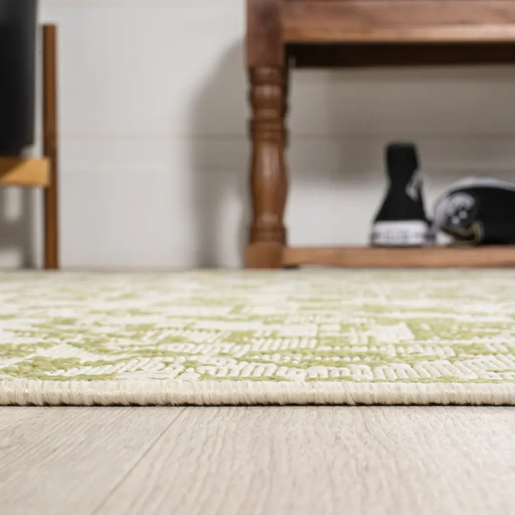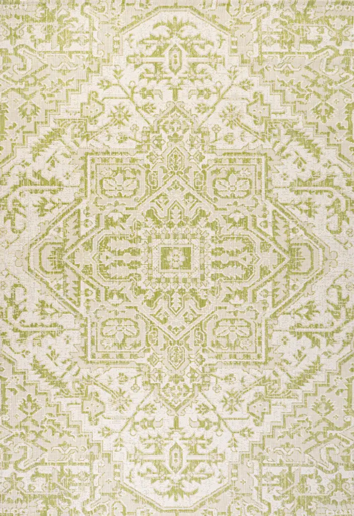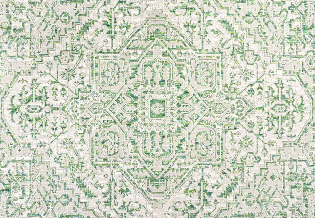 Estrella Bohemian Medallion Textured Weave Indoor/outdoor, Cream/green, 9 X 12
