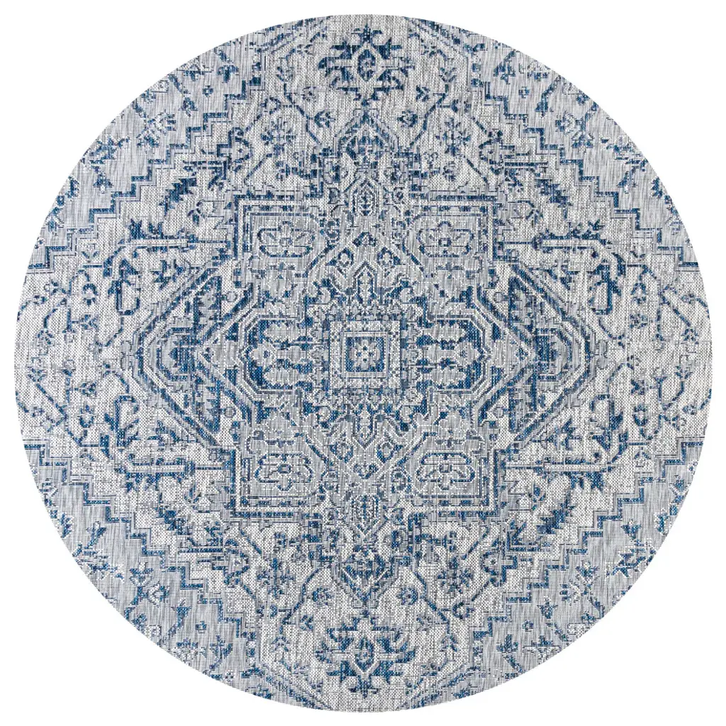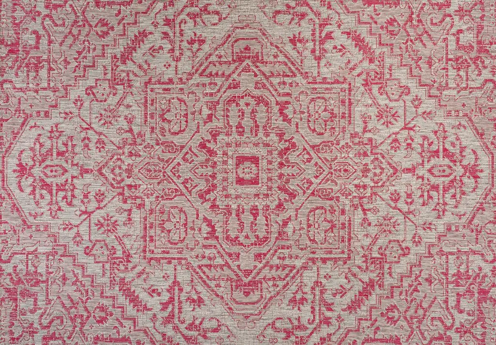 With its star-inspired medallion, this borderless rug adds dreamy Bohemian style to an outdoor porch or patio. Varied tones of red and rust on a mingled gray background give this rug a hand-woven, vintage vibe. The flatweave design is great for high-traffic spaces indoors too.Features:• Water resistance with 0.19" pile• Fuchsia and cream with a handwoven mingled texture• Flat-weave construction of 100% polypropylene• 100% Polypropylene• No backing, use of rug pad is recommended (sold separately)• Power Loomed in Turkey• Actual Dimension: 5 ft. 3 in. x 5 ft. 3 in. Round• Color: Light Gray/Fuchsia• Thickness measures: 0.19 in.• Available in multiple sizes and/or colorsRug Care:• Vacuum regularly and spot clean as needed; avoid direct and continuous exposure to sunlight; use brushless vacuum; remove spills immediately; if liquid, blot with clean, undyed cloth by pressing firmly around the spill to absorb as much as possible; for hard to remove stains, professional rug cleaning is recommended; store in a dry, well ventilated area and rotate for consistent wear• Packing and shipping may cause temporary creases in rugs, which will flatten out after a week on the floor; to expedite the process, try back-rolling your rug before laying it down, and then allow ample time for the remaining creases to relax• Please Note: Due to differences in monitors, some rug colors may vary slightly. Lengths and widths may vary from the published dimensions. Patterns may vary slightly according to shape and size selected.About us:Style your floors with JONATHAN Y. By combining fine craftsmanship and design, this New York creative studio is bringing fashion to your floors. The collection mixes sustainable organic materials, vibrant colors and trend worthy styles to create JONATHAN Y''s distinctive catalog of rugs.