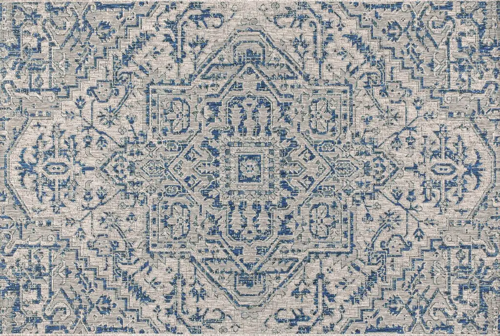 With its star-inspired medallion, this borderless rug adds dreamy Bohemian style to an outdoor porch or patio. Varied tones of navy and blue on a mingled gray background give this rug a hand-woven, vintage vibe. The flatweave design is great for high-traffic spaces indoors too. Features:• Flat-weave construction of 100% polypropylene• Navy and gray with a handwoven mingled texture• Water resistance with 0.19" pile• 100% Polypropylene• No backing, use of rug pad is recommended (sold separately)• Power Loomed in Turkey• Actual Dimension: 5 ft. 3 in. x 7 ft. 7 in.• Color: Navy/Gray• Thickness measures: 0.19 in.• Available in multiple sizes and/or colorsRug Care:• Durable and easy-care - just sweep or hose down with mild soap and water• Packing and shipping may cause temporary creases in rugs, which will flatten out after a week on the floor; to expedite the process, try back-rolling your rug before laying it down, and then allow ample time for the remaining creases to relax• Please Note: Due to differences in monitors, some rug colors may vary slightly. Lengths and widths may vary from the published dimensions. Patterns may vary slightly according to shape and size selected.About us:Style your floors with JONATHAN Y. By combining fine craftsmanship and design, this New York creative studio is bringing fashion to your floors. The collection mixes sustainable organic materials, vibrant colors and trend worthy styles to create JONATHAN Y''s distinctive catalog of rugs.