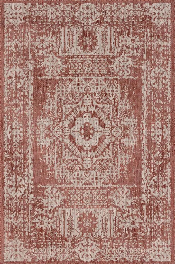 Estrella Bohemian Medallion Textured Weave Indoor/outdoor, Red/taupe, 5 X 8