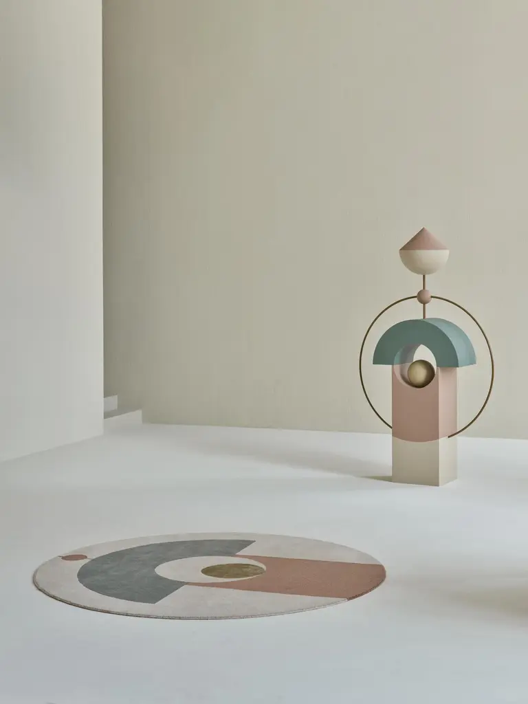 ETERNAL ORB, 'Dimensuous' collection, by Linie DesignCircular handmade rug. Wool and silk, hand knotted. Two sizes available: 200cm or 250cmAn artistic and visually alluring hand-knotted rug from Linie Design. Eternal Orb uses contrasting colours and shapes to create an intricate design replicated in thousands of tiny knots. Using only natural, sustainable fibres, the rug is crafted in a luxurious blend of RWS wool and silk with an organic cotton warp, which enhances the colours, texture and sheen, while ensuring natural warmth, strength and durability. Hand-knotted by Linie Design’s artisan weavers, designed by Urd Moll Gundermann.