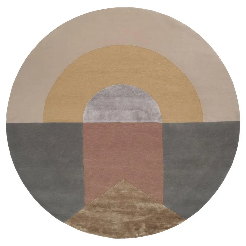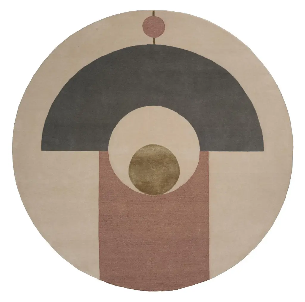 ETERNAL ORB, 'Dimensuous' collection, by Linie DesignCircular handmade rug. Wool and silk, hand knotted. Two sizes available: 200cm or 250cmAn artistic and visually alluring hand-knotted rug from Linie Design. Eternal Orb uses contrasting colours and shapes to create an intricate design replicated in thousands of tiny knots. Using only natural, sustainable fibres, the rug is crafted in a luxurious blend of RWS wool and silk with an organic cotton warp, which enhances the colours, texture and sheen, while ensuring natural warmth, strength and durability. Hand-knotted by Linie Design’s artisan weavers, designed by Urd Moll Gundermann.