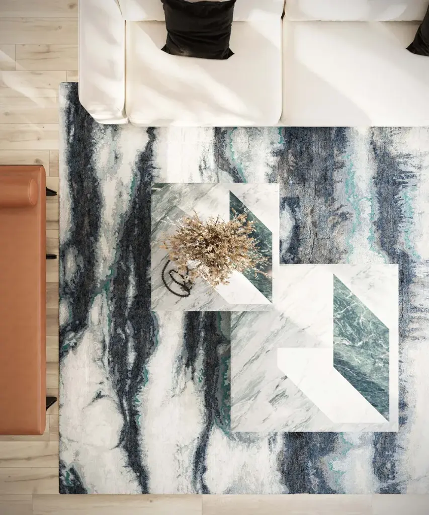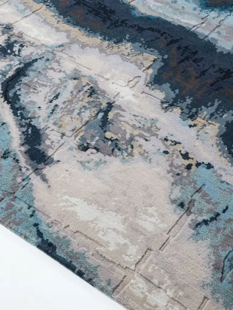 Material: Wool, Blend SilkKnot Density: 100 knots/inch²Pile Height: 4 - 6mmTechnique: Hand-knottedCustom sizes and colors on requestThe Himalaya collection is inspired by the surface of the rocky mountains, the crumbly texture, and the complex palette that develops over multiple natural layers. Each rug is handwoven by skilled artisans using the finest materials, resulting in unique and durable pieces.In creating the patterns, Tapis Rouge emulated the texture and the complex color palette of the raw inspiration material, combining different pile heights and loop' types with a 100 knots/inch² knot density.The rug Kuninda Kingdom is made of 90 % wool and 10% blend silk; the pile height is 5mm.