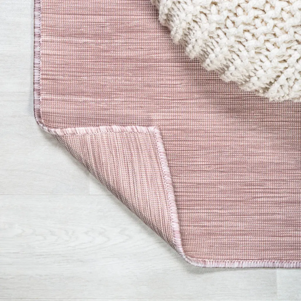 Anchor your mid-century modern, contemporary farmhouse, or coastal space with the perfect solid flat-weave rug. The mingled pink colored design is practical for high-traffic areas with kids and pets. Add texture to a living room, dining room, entry, office or bedroom with our easy-care synthetic rug. Features:• Flat-weave construction is practical and durable• Easy-care polypropylene fibers; sweep or vacuum to clean• 100% Polypropylene• No backing, use of rug pad is recommended (sold separately)• Power Loomed in India• Thickness measures: 0.05 in.• Available in multiple sizes and/or colorsRug Care:• Durable and easy-care - just sweep or hose down with mild soap and water• Packing and shipping may cause temporary creases in rugs, which will flatten out after a week on the floor; to expedite the process, try back-rolling your rug before laying it down, and then allow ample time for the remaining creases to relax• Please Note: Due to differences in monitors, some rug colors may vary slightly. Lengths and widths may vary from the published dimensions. Patterns may vary slightly according to shape and size selected.About us:Style your floors with JONATHAN Y. By combining fine craftsmanship and design, this New York creative studio is bringing fashion to your floors. The collection mixes sustainable organic materials, vibrant colors and trend worthy styles to create JONATHAN Y''s distinctive catalog of rugs.