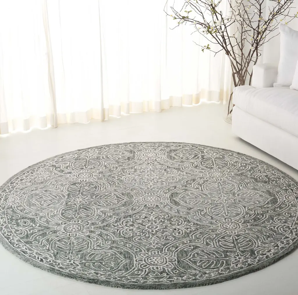Introduce an elegant addition to your home with our hand tufted wool area rug. This large rectangle rug, sized at 8 feet by 10 feet, showcases a soothing blend of sage and ivory hues. The design brings traditional style to any room, featuring an exquisite oriental pattern that enhances its aesthetic appeal. Crafted in India, the rug provides a comforting underfoot experience with its 3/8 inch height. Transform your living space with this beautifully crafted piece that seamlessly combines style and function. Perfect for adding warmth and character to your home decor.