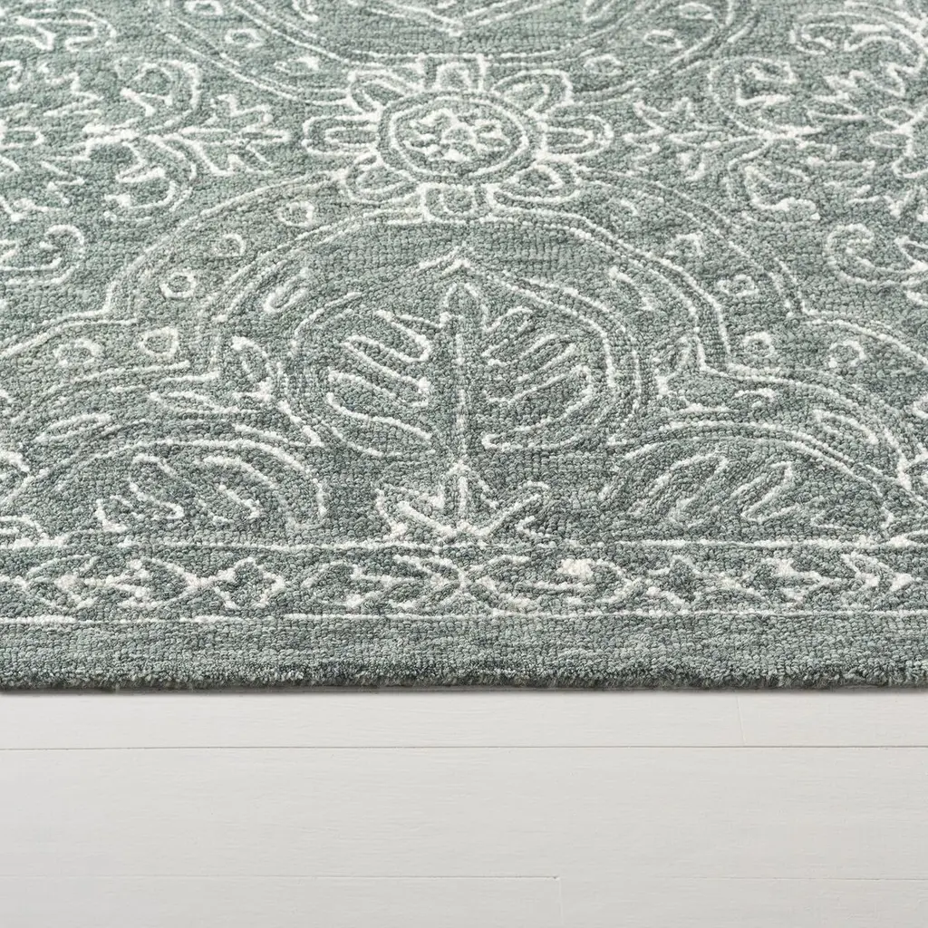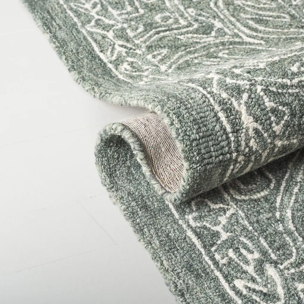 Introduce an elegant addition to your home with our hand tufted wool area rug. This large rectangle rug, sized at 8 feet by 10 feet, showcases a soothing blend of sage and ivory hues. The design brings traditional style to any room, featuring an exquisite oriental pattern that enhances its aesthetic appeal. Crafted in India, the rug provides a comforting underfoot experience with its 3/8 inch height. Transform your living space with this beautifully crafted piece that seamlessly combines style and function. Perfect for adding warmth and character to your home decor.