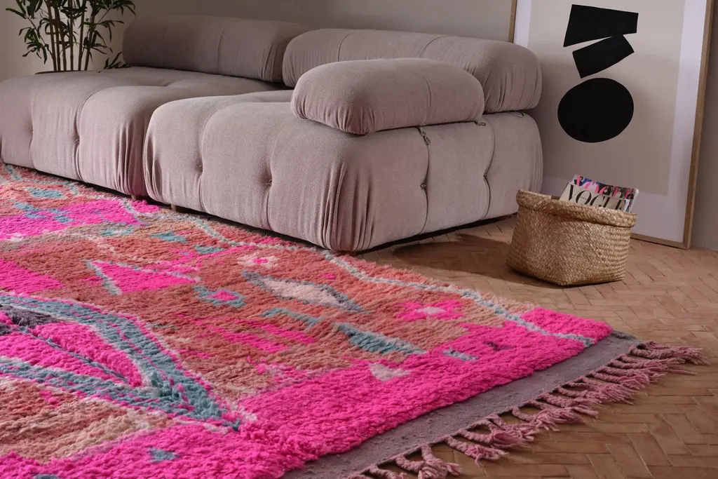 One-of-a-kind new rug, hand-knotted near the small city of Boujad in the Chaouia-Ouardigha region of Morocco