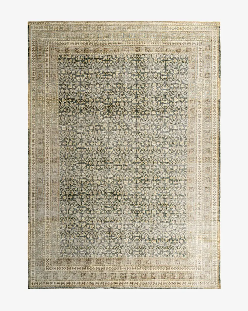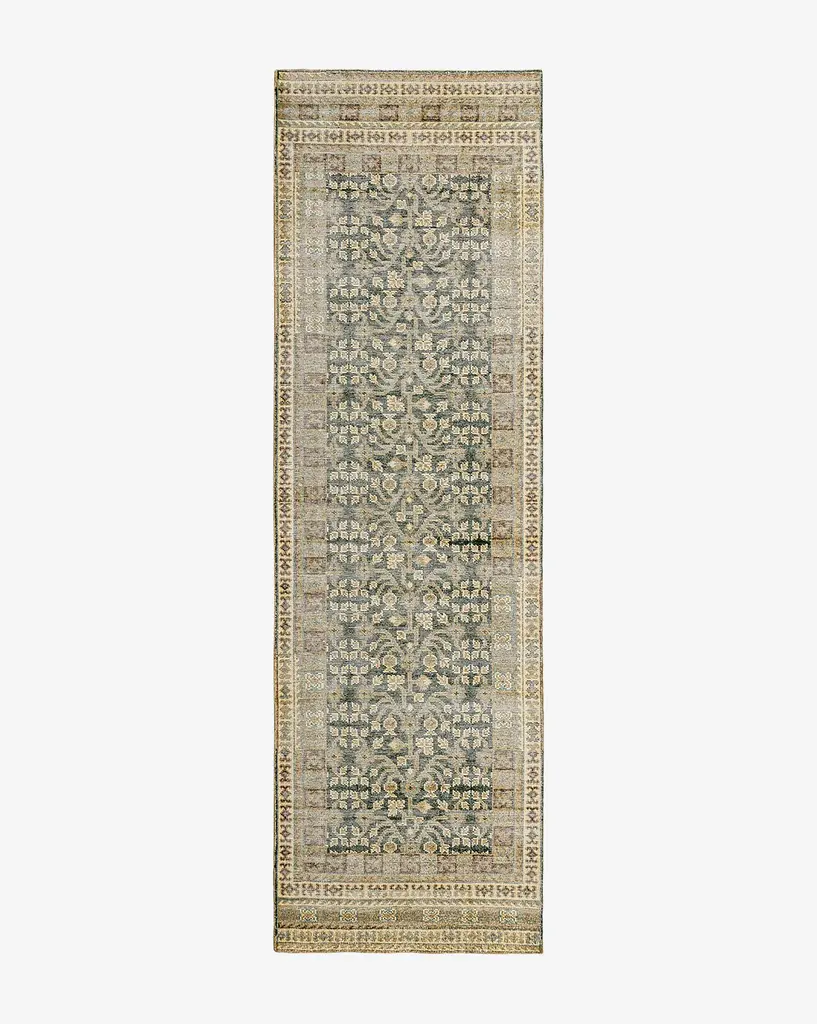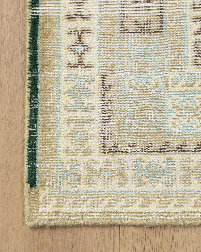 With a vintage feel that boasts intricate details, the Evangeline Hand-Knotted Wool Rug adds the calming feel of green, tan and black tones to your space. Soft underfoot and hand-knotted from 100% wool, the rug is both durable and elegant in a design that grounds the room.