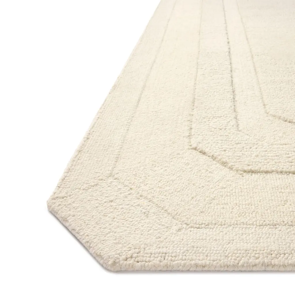 The Evano Collection is a hand-tufted wool area rug with angled edges, offering a modern twist on traditional home decor. It features a luxurious high/low looped pile that adds dimension, making it perfect for living rooms, bedrooms, and more. This collection is crafted in India and is Goodweave-certified, reflecting our commitment to ethical production and the support of weavers' communities. Some shedding is expected as a natural characteristic of wool rugs; frequent vacuuming without a beater bar is recommended.