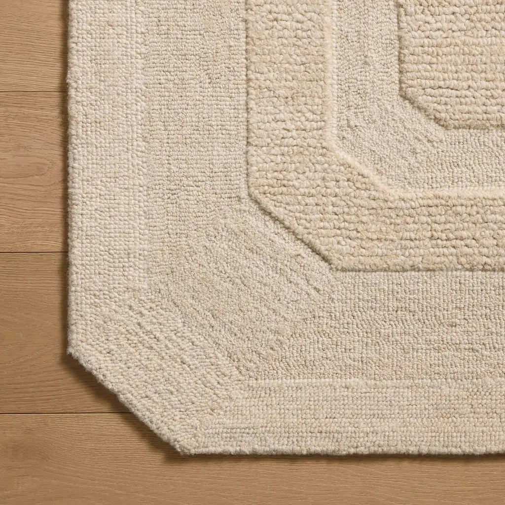 The Evano Collection is a hand-tufted wool area rug with angled edges, offering a modern twist on traditional home decor. It features a luxurious high/low looped pile that adds dimension, making it perfect for living rooms, bedrooms, and more. This collection is crafted in India and is Goodweave-certified, reflecting our commitment to ethical production and the support of weavers' communities. Some shedding is expected as a natural characteristic of wool rugs; frequent vacuuming without a beater bar is recommended.