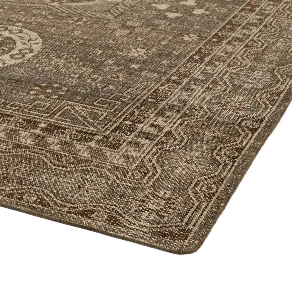 The Evara Hand Knotted Rug is a timeless piece inspired by vintage rugs originally handwoven in the ancient city of Khotan. Featuring intricate motifs and designed with wave and fret patterns or flowering vines along the borders, this rug tells a story all its own. Crafted from a soft wool/cotton blend, each rug is hand-knotted following a technique and tradition that dates back thousands of years. The meticulous craftsmanship involves two to three master weavers dedicating five to six weeks to complete each rug, depending on its size and intricacy. Designed to wear beautifully over time, these rugs become heirlooms to be cherished for generations. Due to their handcrafted nature, slight variations in sizing may occur, adding to their unique charm.