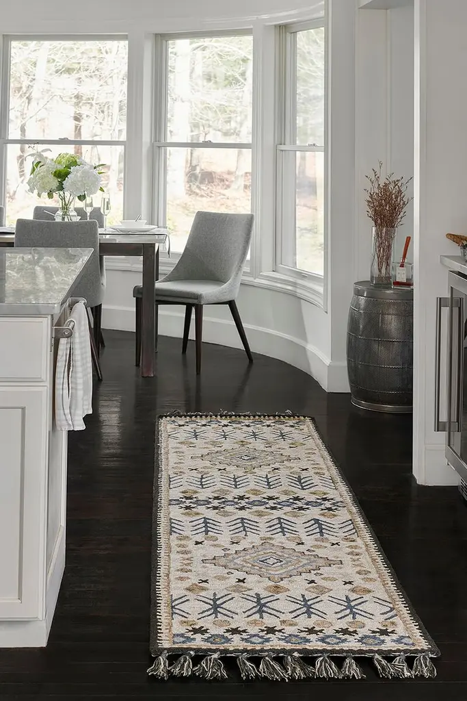 Southwestern motifs get a modern edge in the graphic design elements of this decorative area rug collection. Available in a stunning array of tribal patterns, each floorcovering features a geometric repeat inspired by iconic tribal prints. Diamonds, crosses, medallions and stars form repeating stripes and intricate linework while tassels at the top and bottom of the rug accentuate the exotic vibe of the collection with a fun, fringed border. Exceptional in style and composition, each rug is handcrafted to perfection.