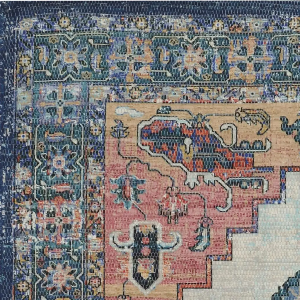 A modern spin on a bohemian staple, the Everleigh Rug features a classic oriental pattern handwoven using jute and polyester chenille for a more eco-friendly and sustainable choice for your space.